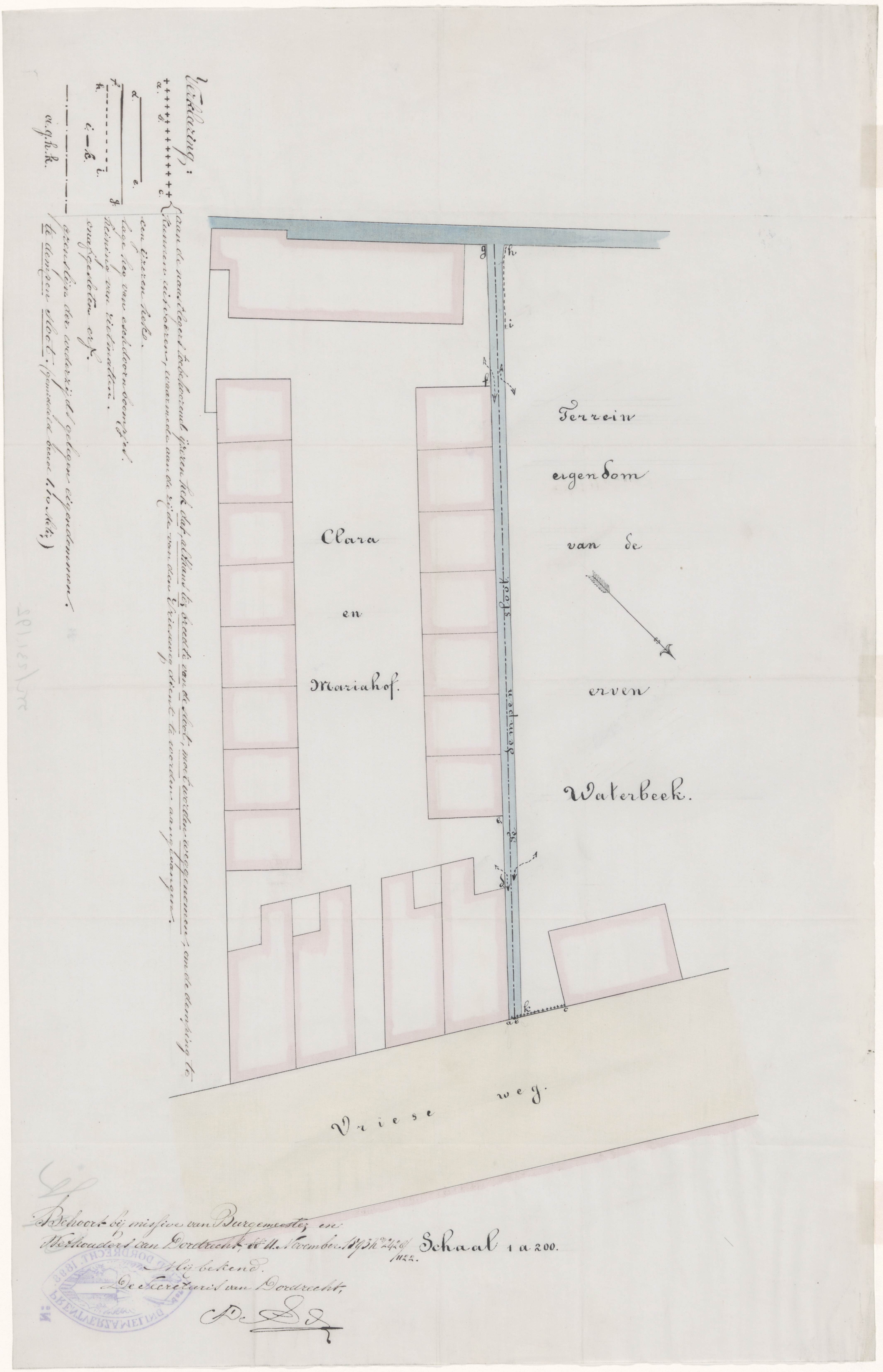 Plattegrond van de Clara en Mariahof aan de Vrieseweg.
