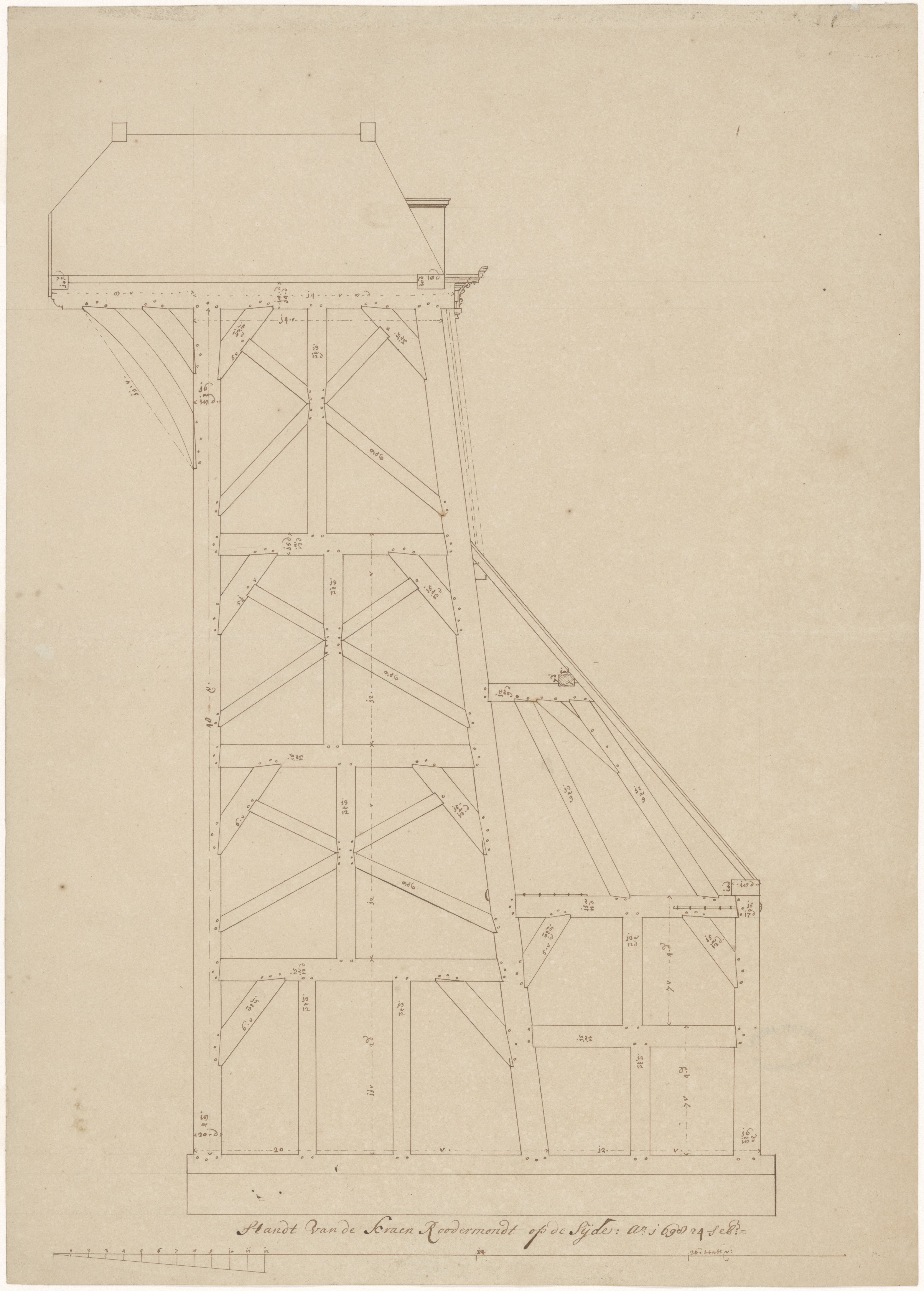 Bouwtekening van kraan Rodermond.