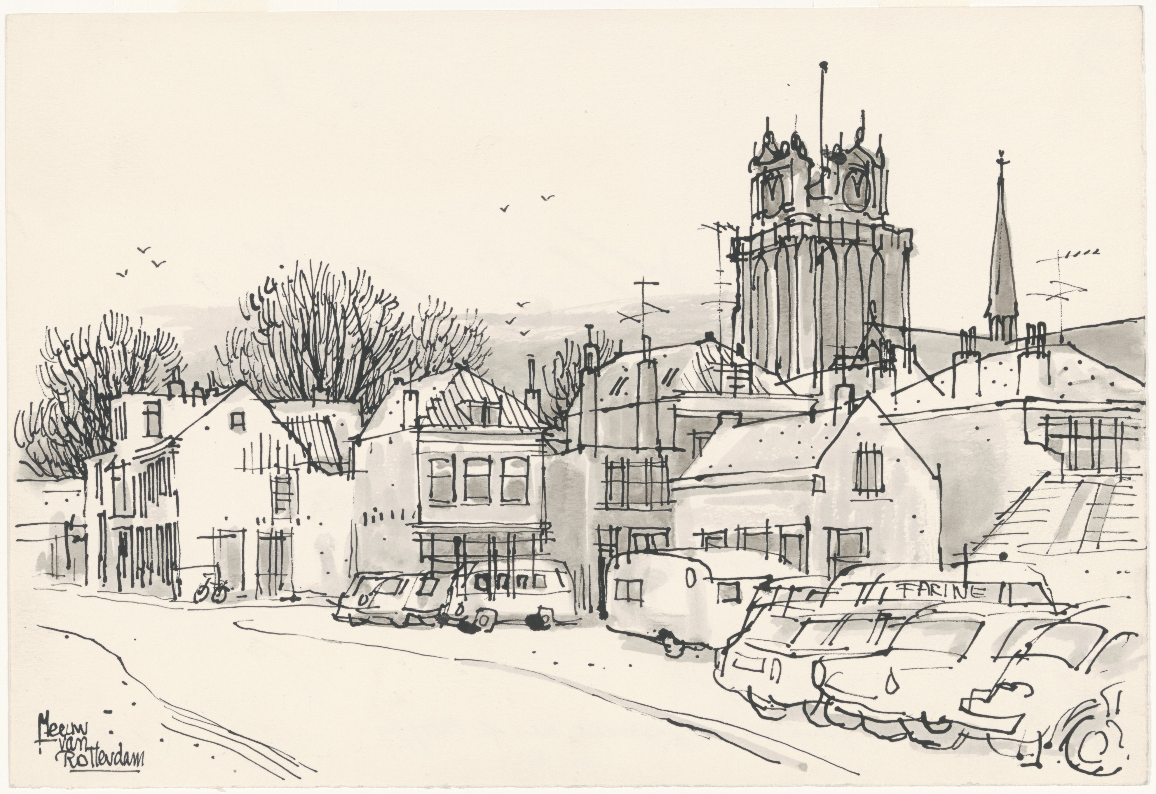- Tekening door Meeuw van Rotterdam van de Boogjes nabij de Botgensstraat.