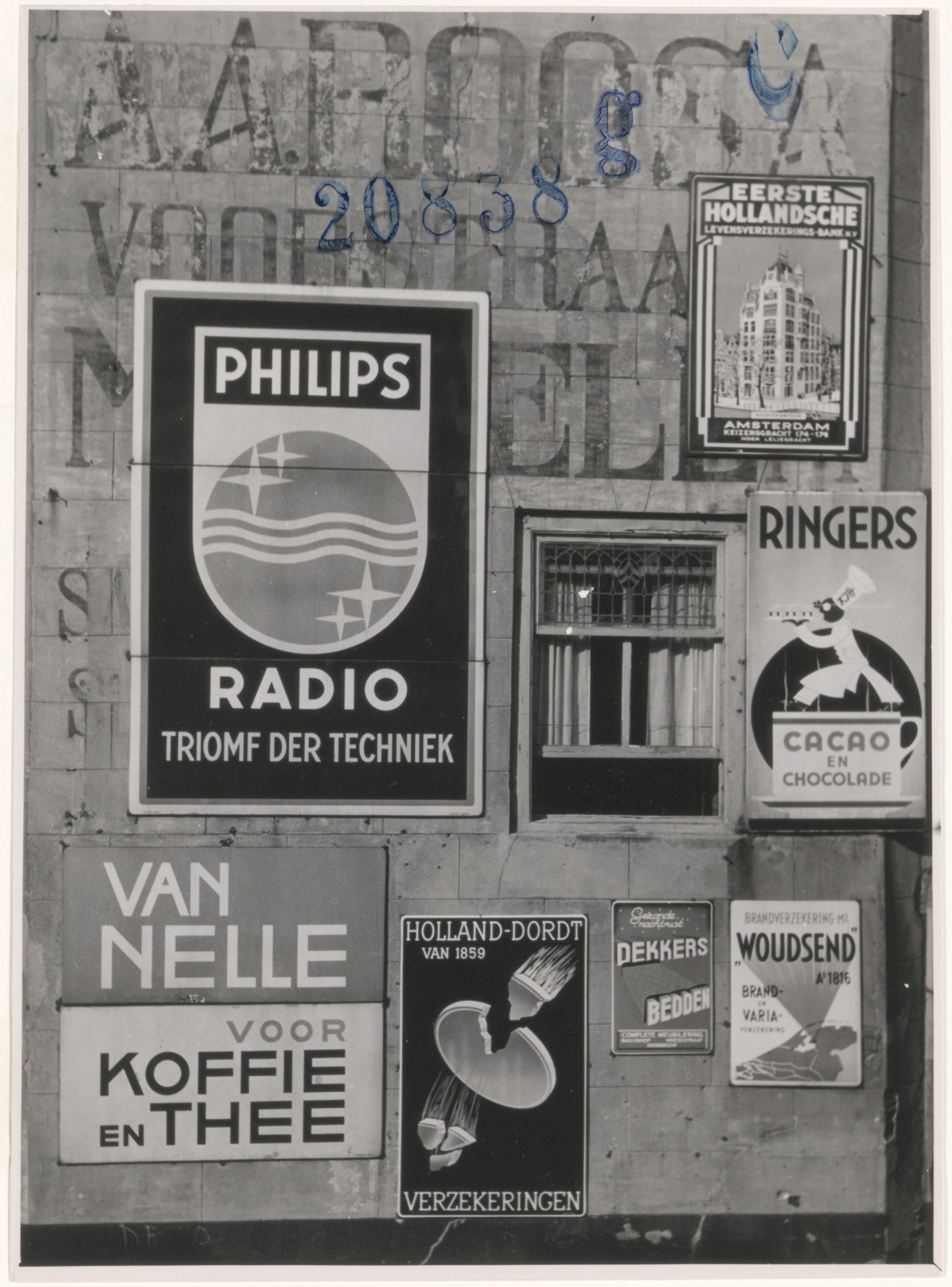 - Gevelreclame op de Nieuwbrug op de zijkant van het pand op de hoek van de Voorstraat.