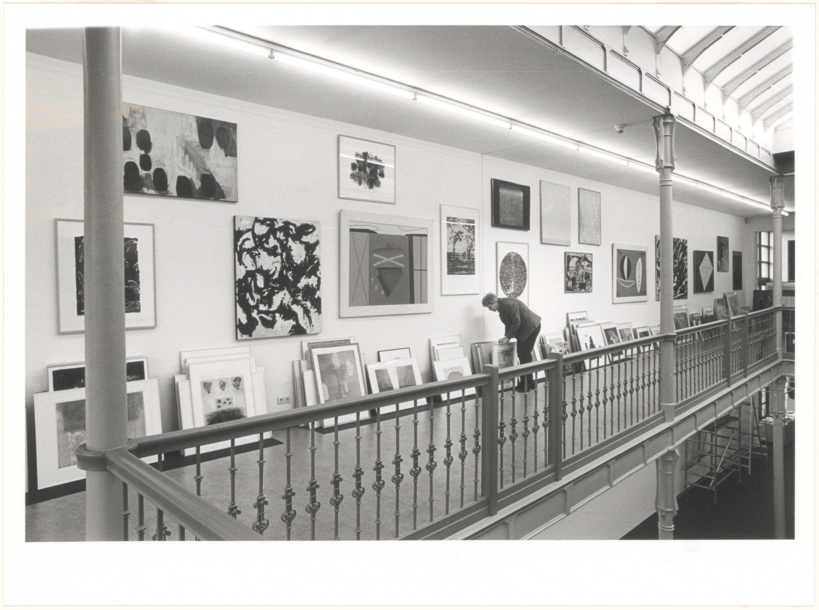 Medewerker Greetje de Man in Centrum Beeldende Kunst en Kunstuitleen aan de Voorstraat.