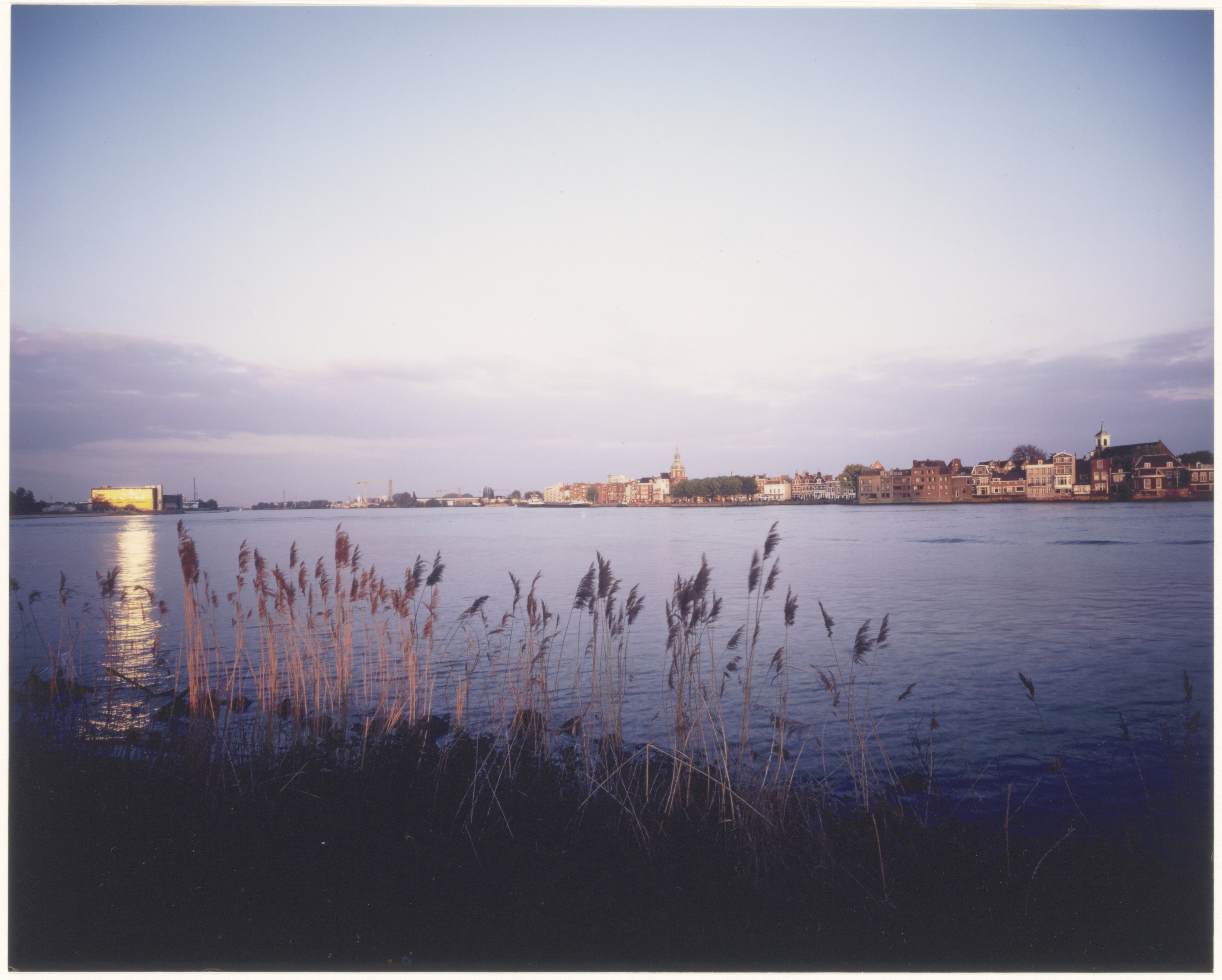- De avond valt over de Oude Maas, Zwijndrecht en Dordrecht, gezien in oostelijke richting.