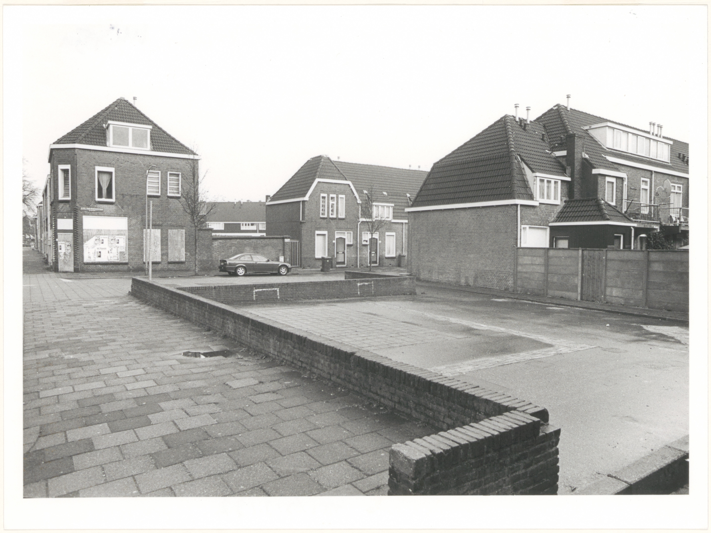 Rechts de J.J.L. ten Katestraat. Jan Smaal heeft het op 554_35854 over het muurtje waar de auto voor staat op deze foto als zijnde het muurtje waar hij nogal eens een bal pleegde tegenaan te trappen bij de de Rozijnenkorf, maar die zat op de andere hoek, aan de P.A. de Genestetstraat. En ja, daar was ook een muurtje :)