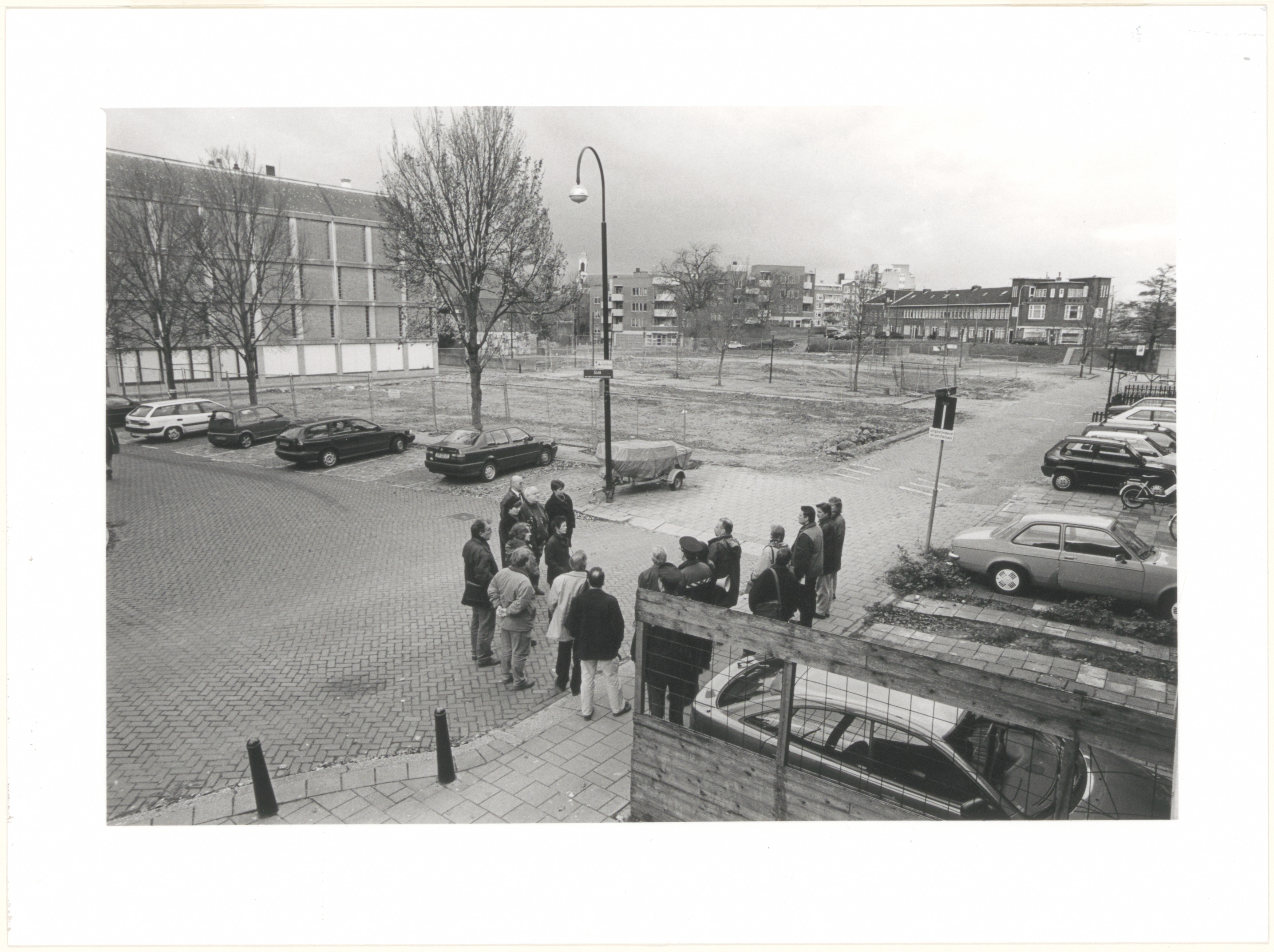 Overleg op de hoek van de Vest en het Stek. Links het archief, rechts de Veststraat, op …