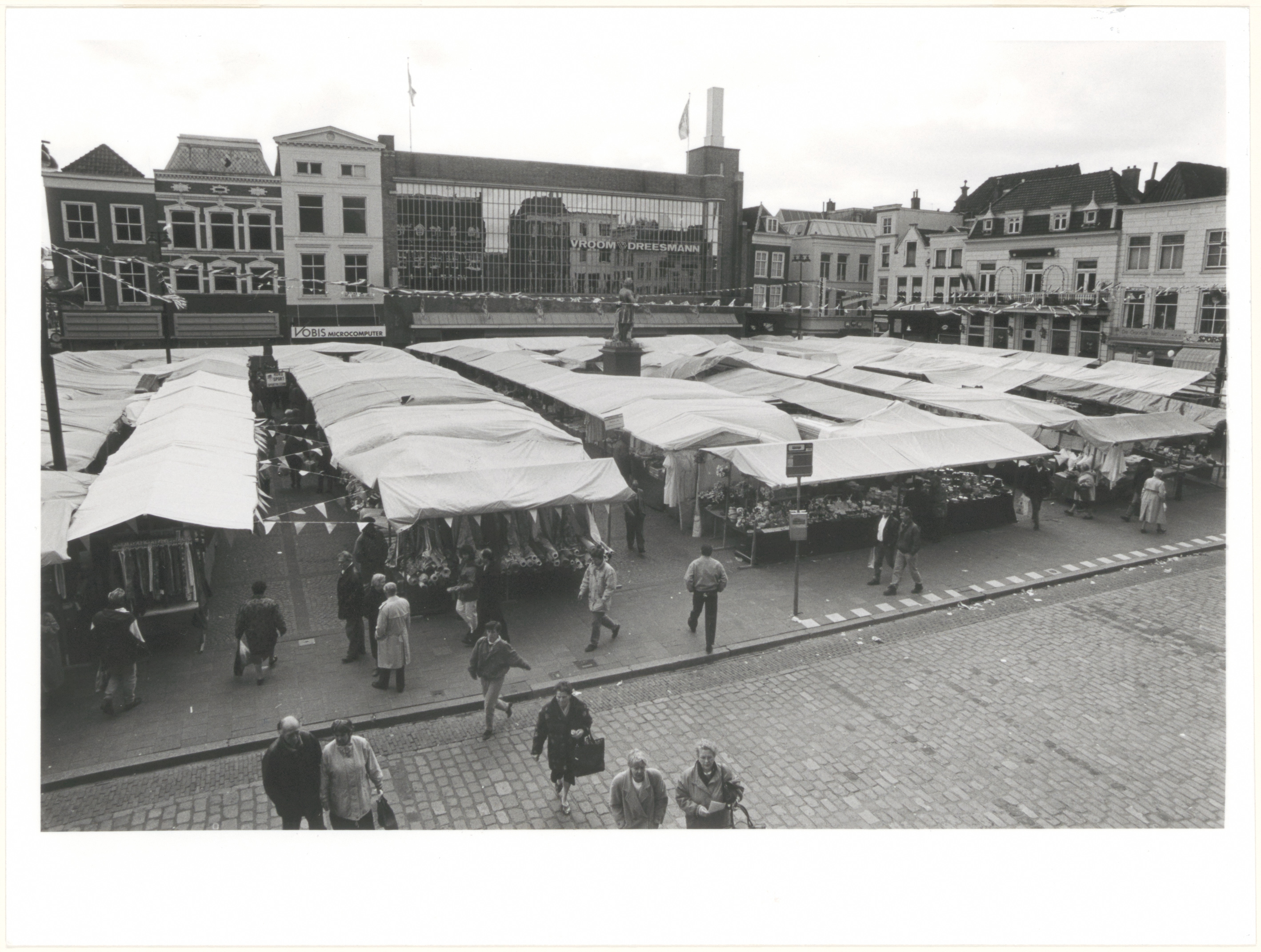 - beeldhouwwerken / standbeelden bushaltes markten / marktkramen warenhuizen winkelend publiek