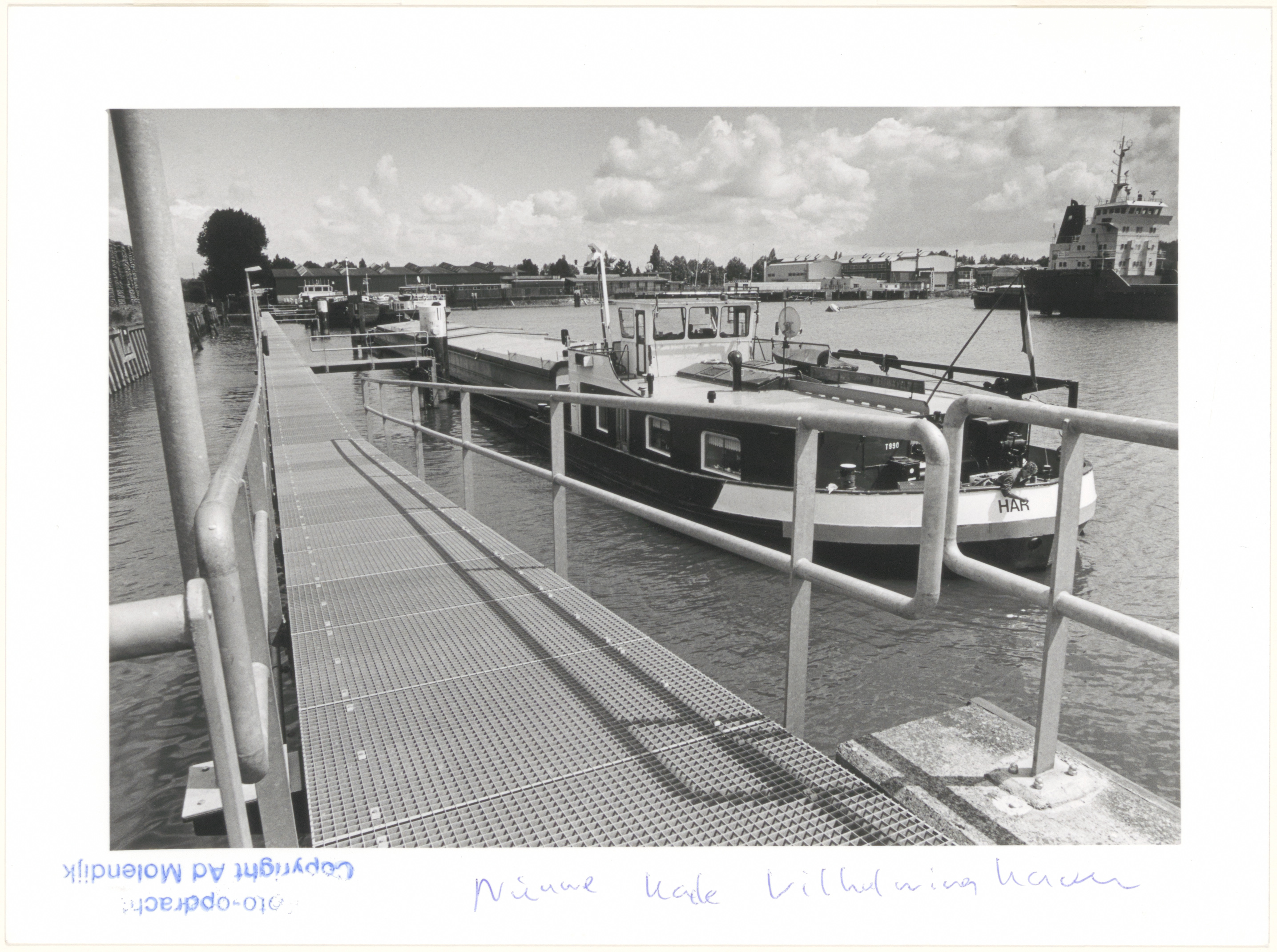 Het nieuw opgeleverde aanlegsteiger aan de noordkant in de Wilhelminahaven naar het oosten (Mijlweg) gezien.