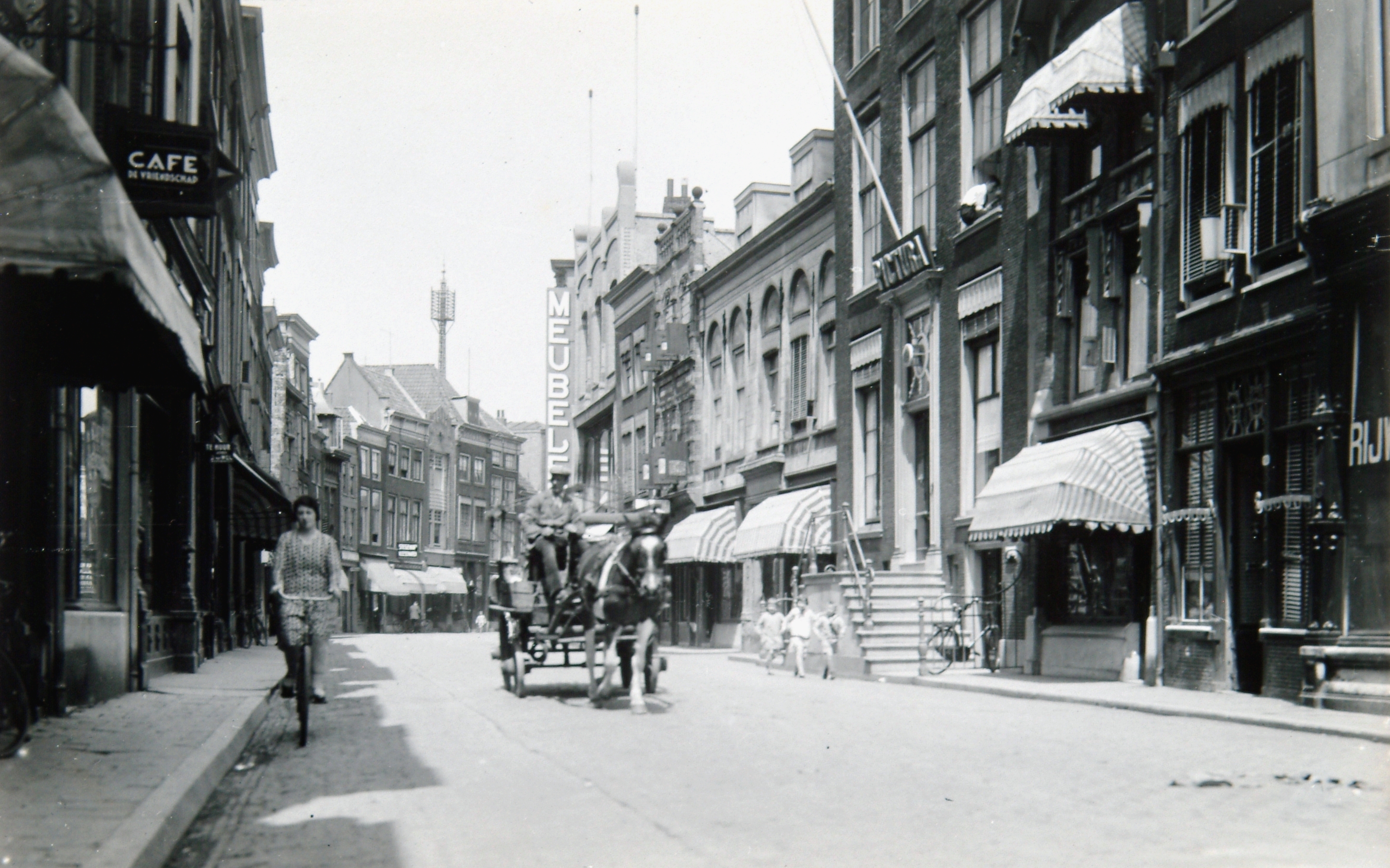 - fietsers groenteboeren masten paard-en-wagens winkels