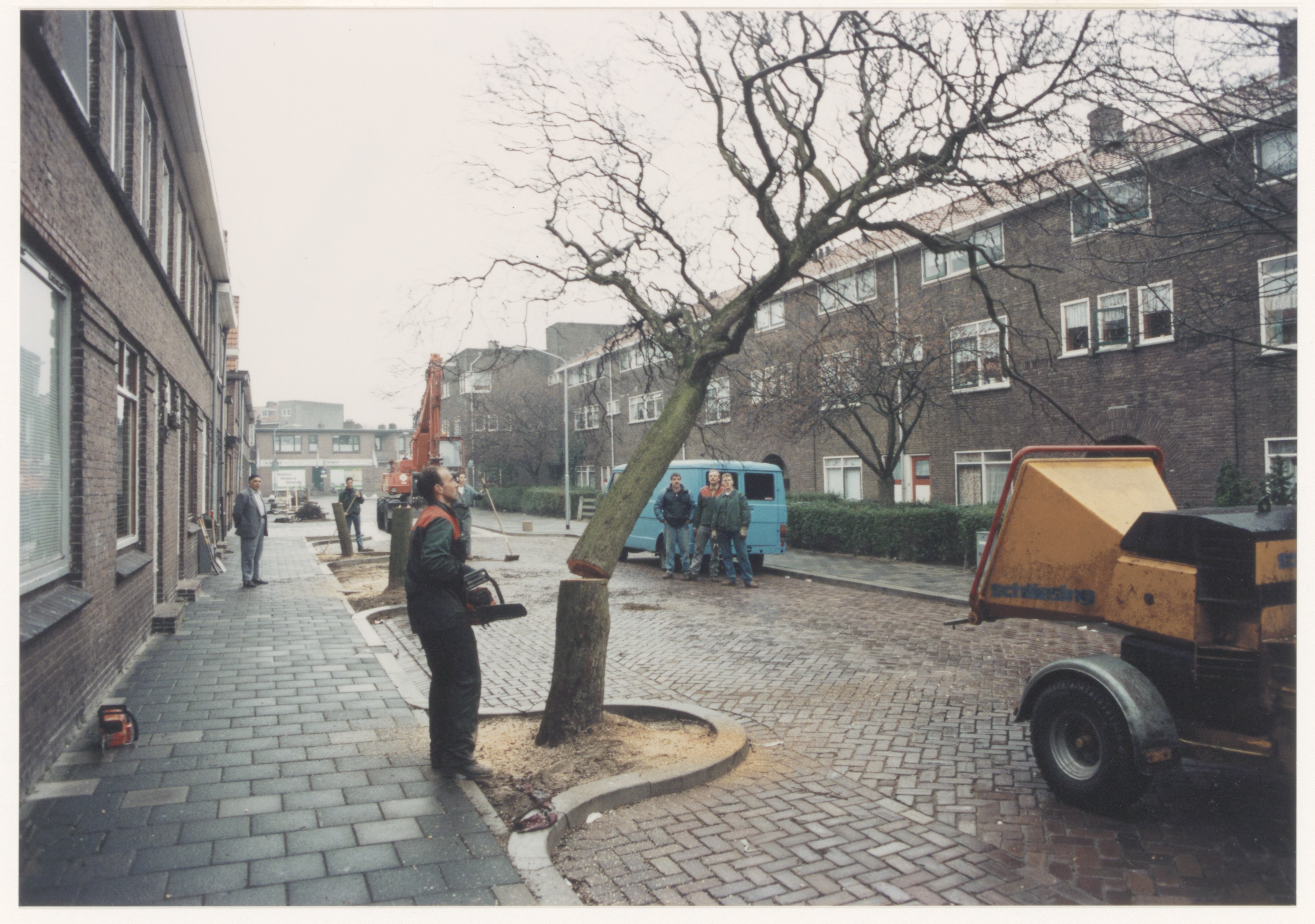- Kappen van bomen in de Tieselensstraat, gezien richting Hoekenessestraat.