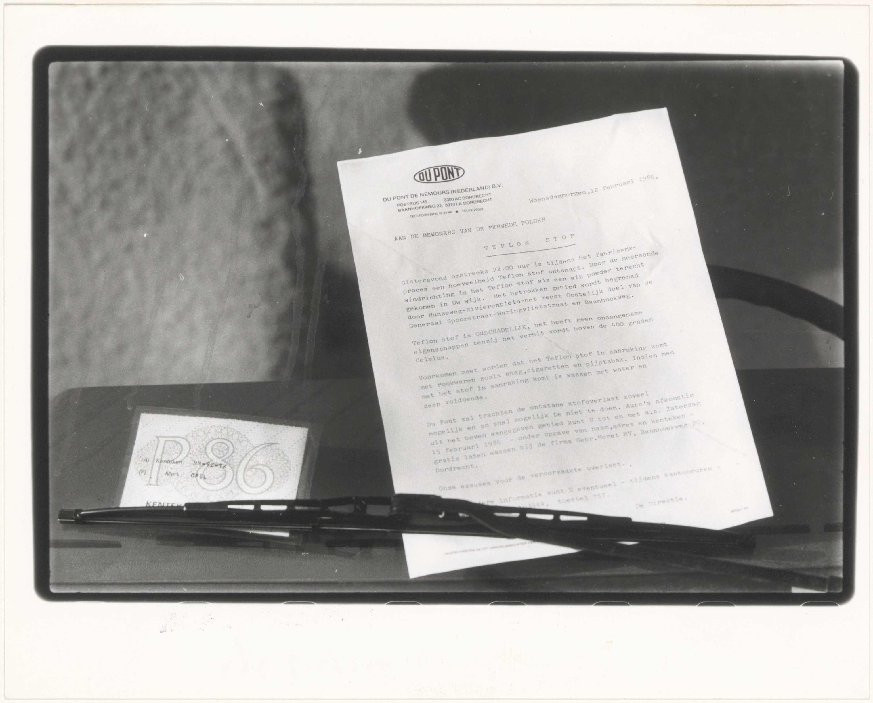 - Waarschuwing van Dupont aan bewoners van de Merwedepolder over ontsnapt teflon-poeder.