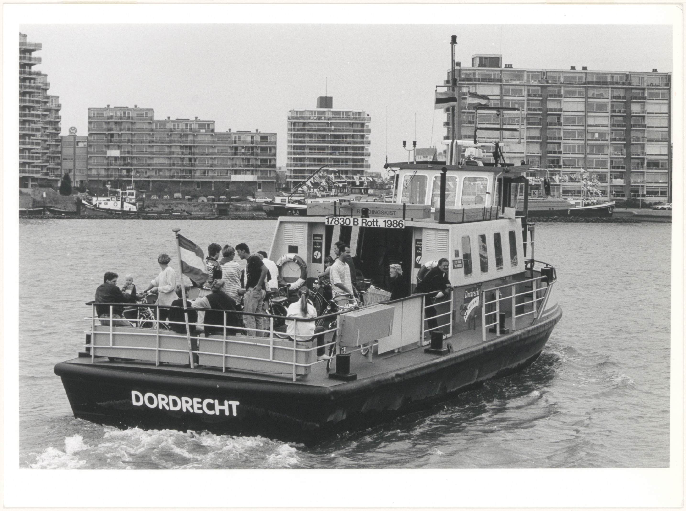 - Veerboot voor voetgangers en fietsers op de Oude Maas ter hoogte van de Hooikade gaat richting Zwijndrecht.