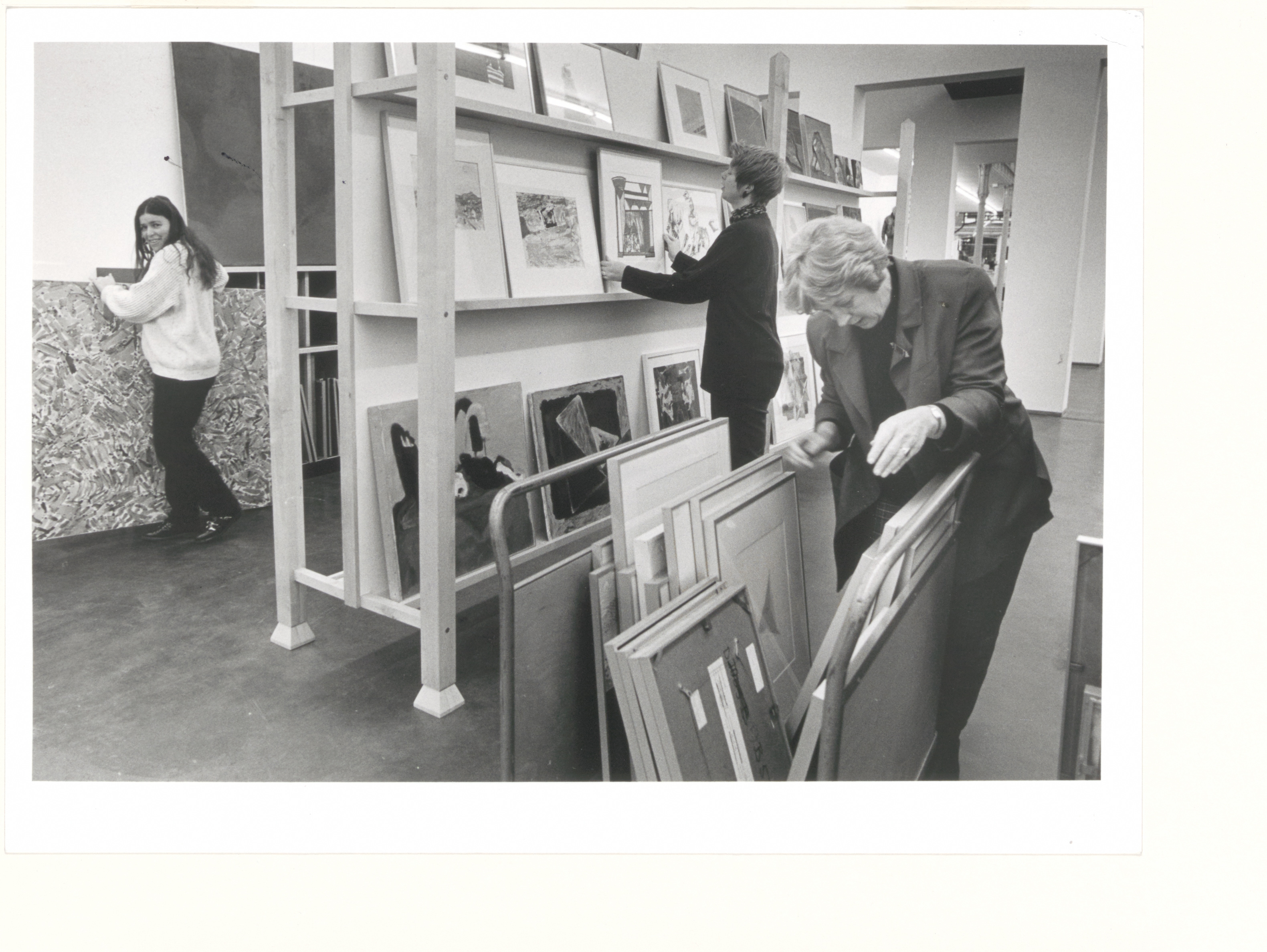 - Medewerkers Nelly van Dalen (links) en Greetje de Man (rechts) in Centrum Beeldende Kunst en Kunstuitleen aan de Voorstraat.