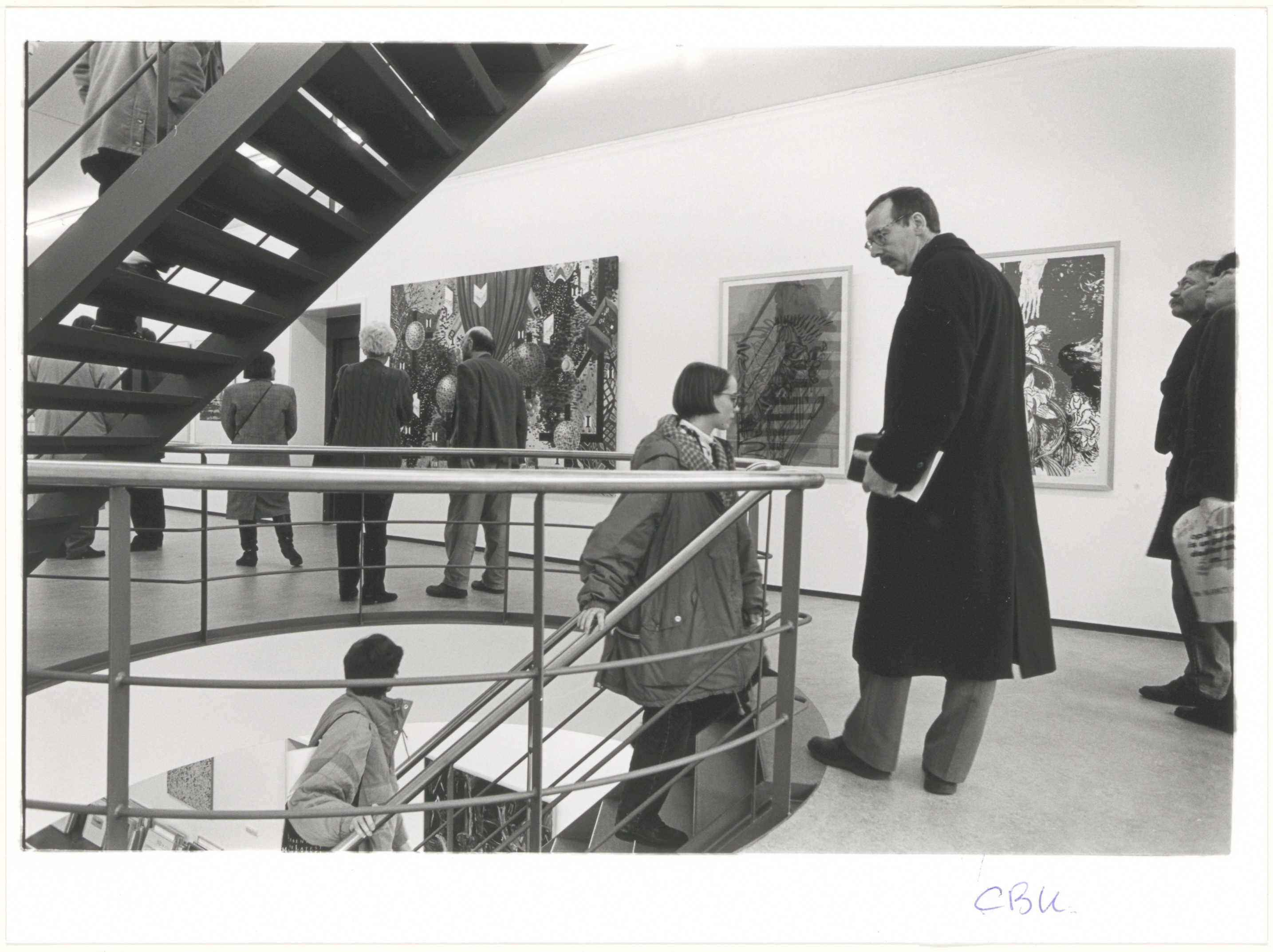 - Trapopgang en de eerste verdieping met bezoekers van de kunstuitleen aan de Voorstraat.
