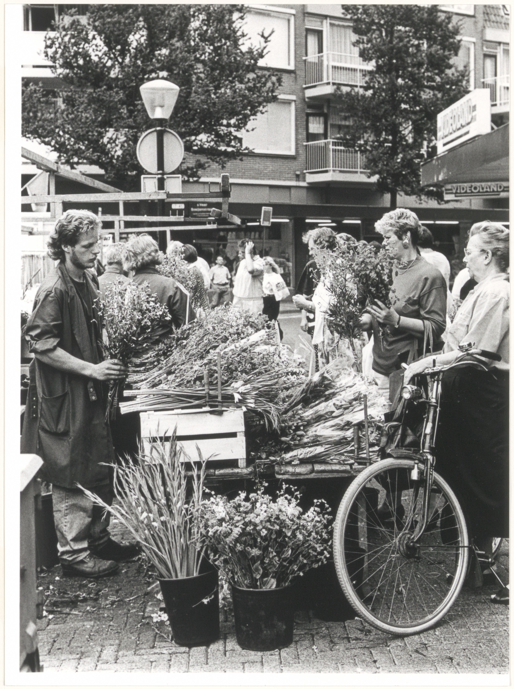 - bloemen / planten lantaarns / straatverlichting markten / marktkramen winkelend publiek