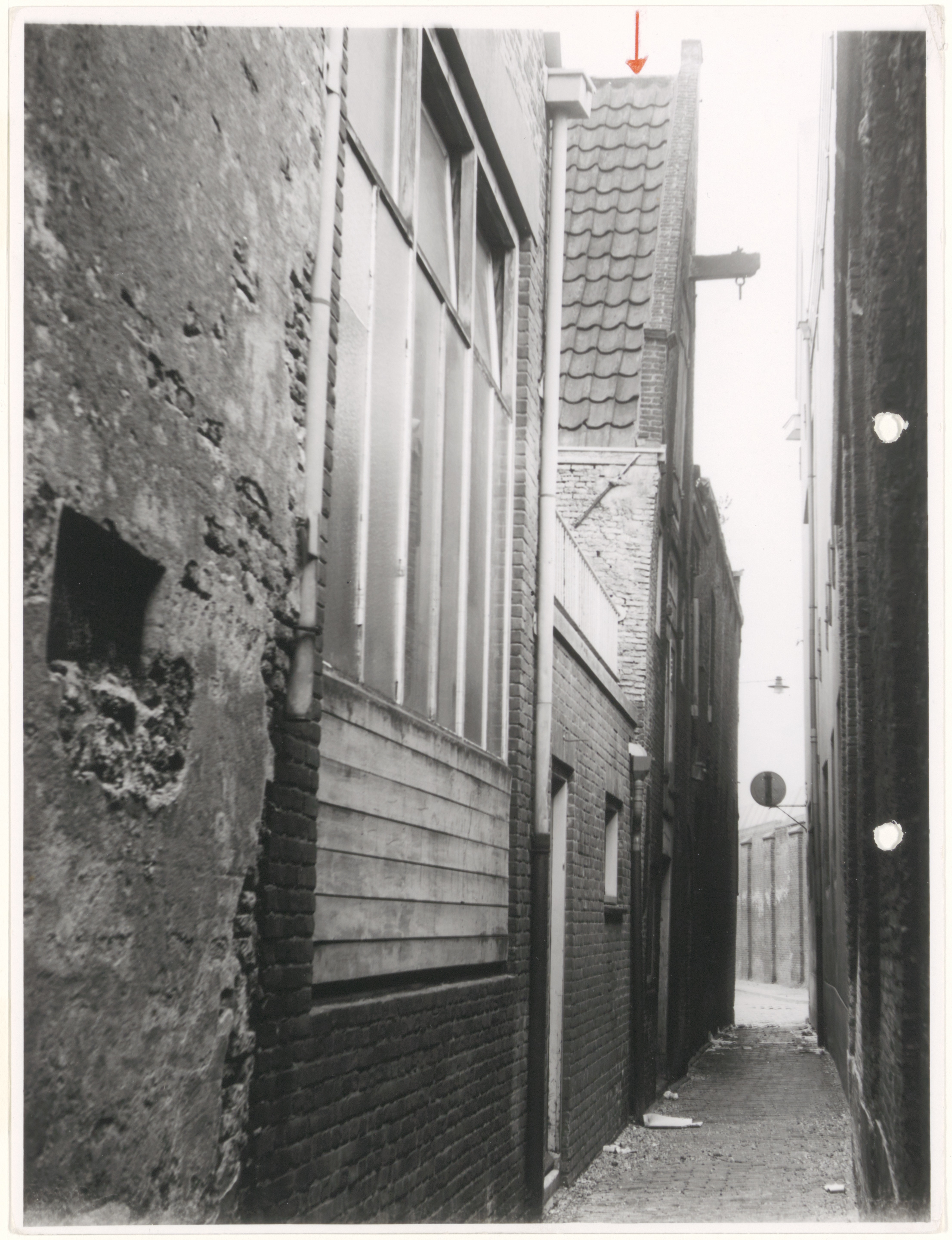 Zakkendragersstraat in de richting van de muur van de gevangenis aan de kant van het Stek.