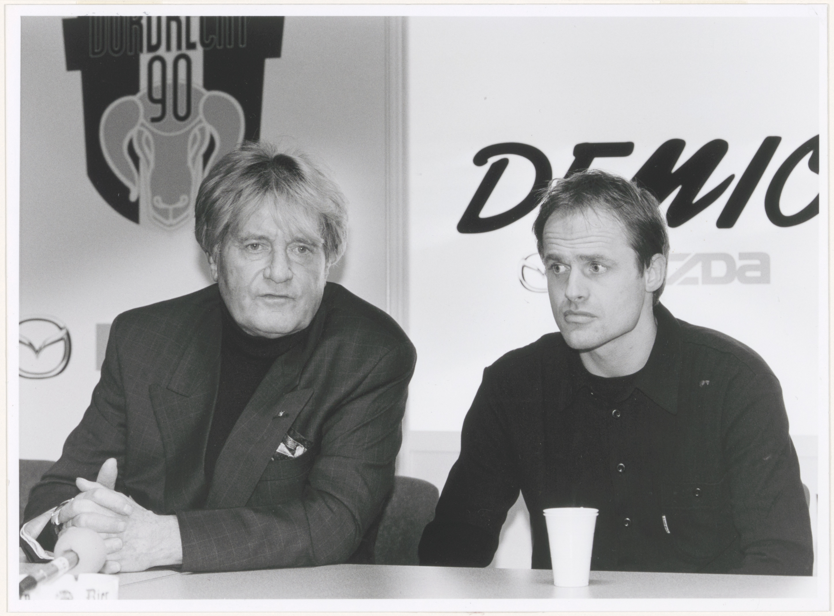 Voormalig scheidsrechter Frans Derks als voorzitter van FC Dordrecht. Rechts van hem …