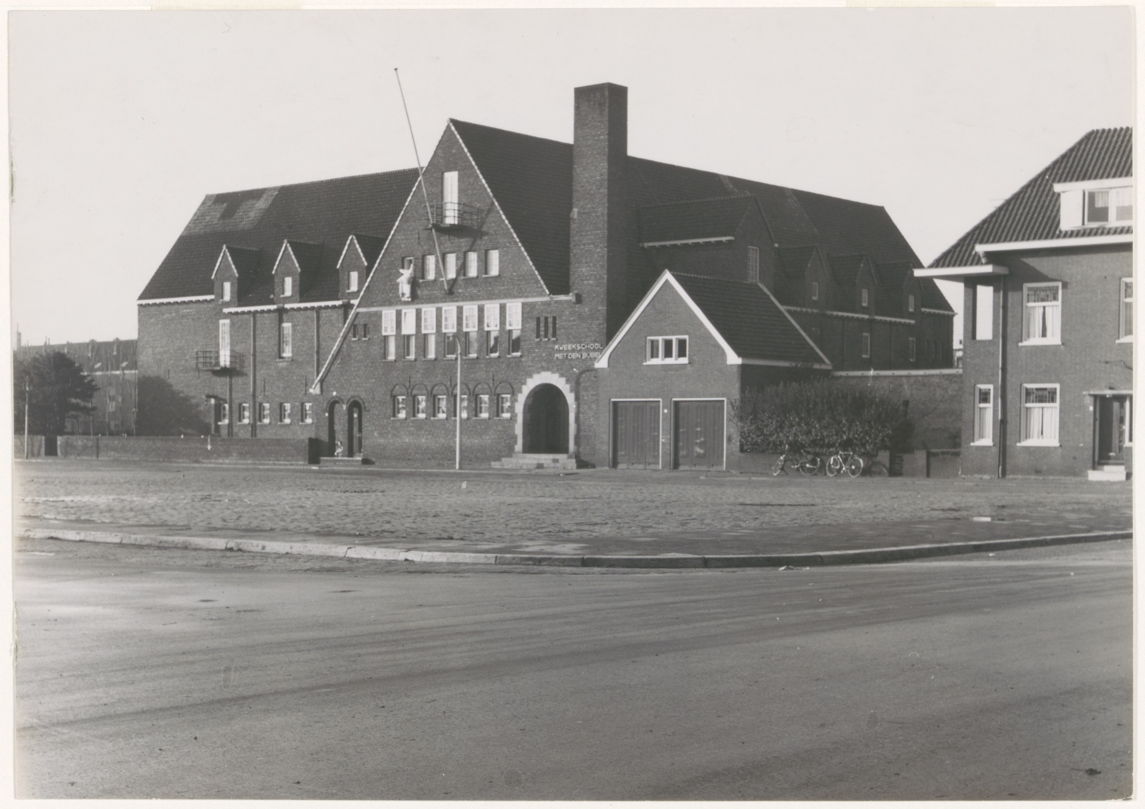 Kweekschool met den Bijbel in de Van Godewijckstraat, gezien vanuit de Cornelis de Wittstraat.