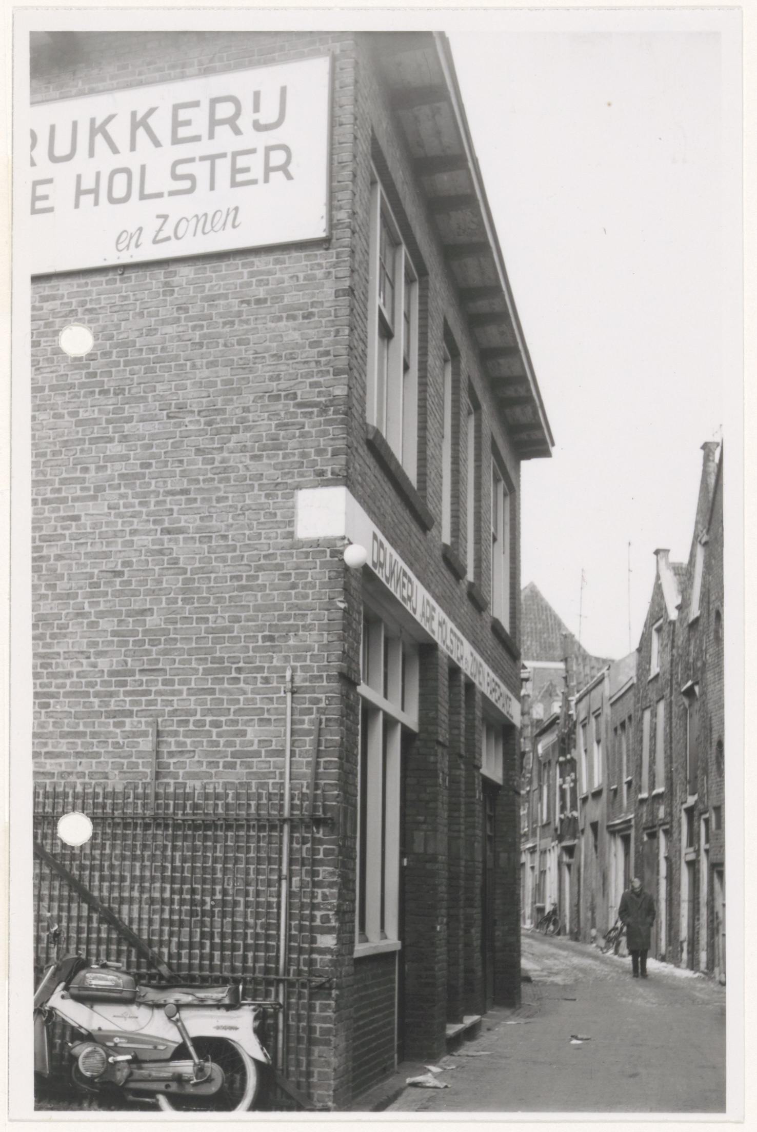 - Drukkerij Holster in de Kleine Spuistraat, gezien richting Voorstraat.