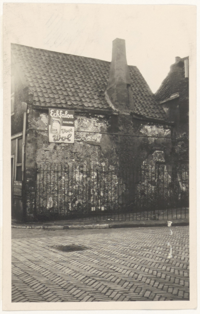 - Hoekhuis op de kruising Blindenliedengasthuissteeg (voorgrond) en Gevulde gracht (links).