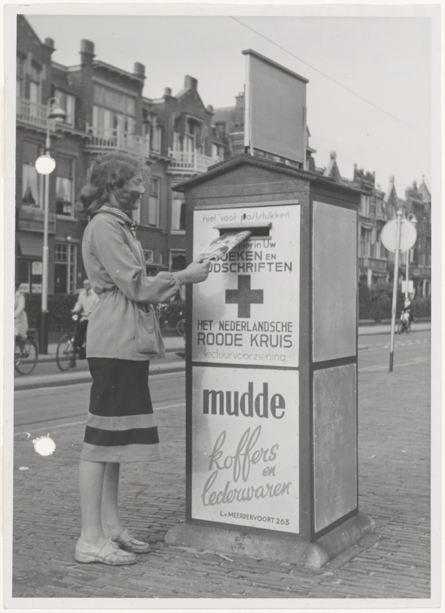Dit inzamelpunt stond voor de deur van het Lectuurdepot Roode Kruis, Laan van Meerdervoort 438, 's-Gravenhage. Wanneer je vandaar de boel overzag, zag je ongeveer het zelfde als in de link. Periode 1945-1958. https://goo.gl/maps/7bDZ6YcYfhR2