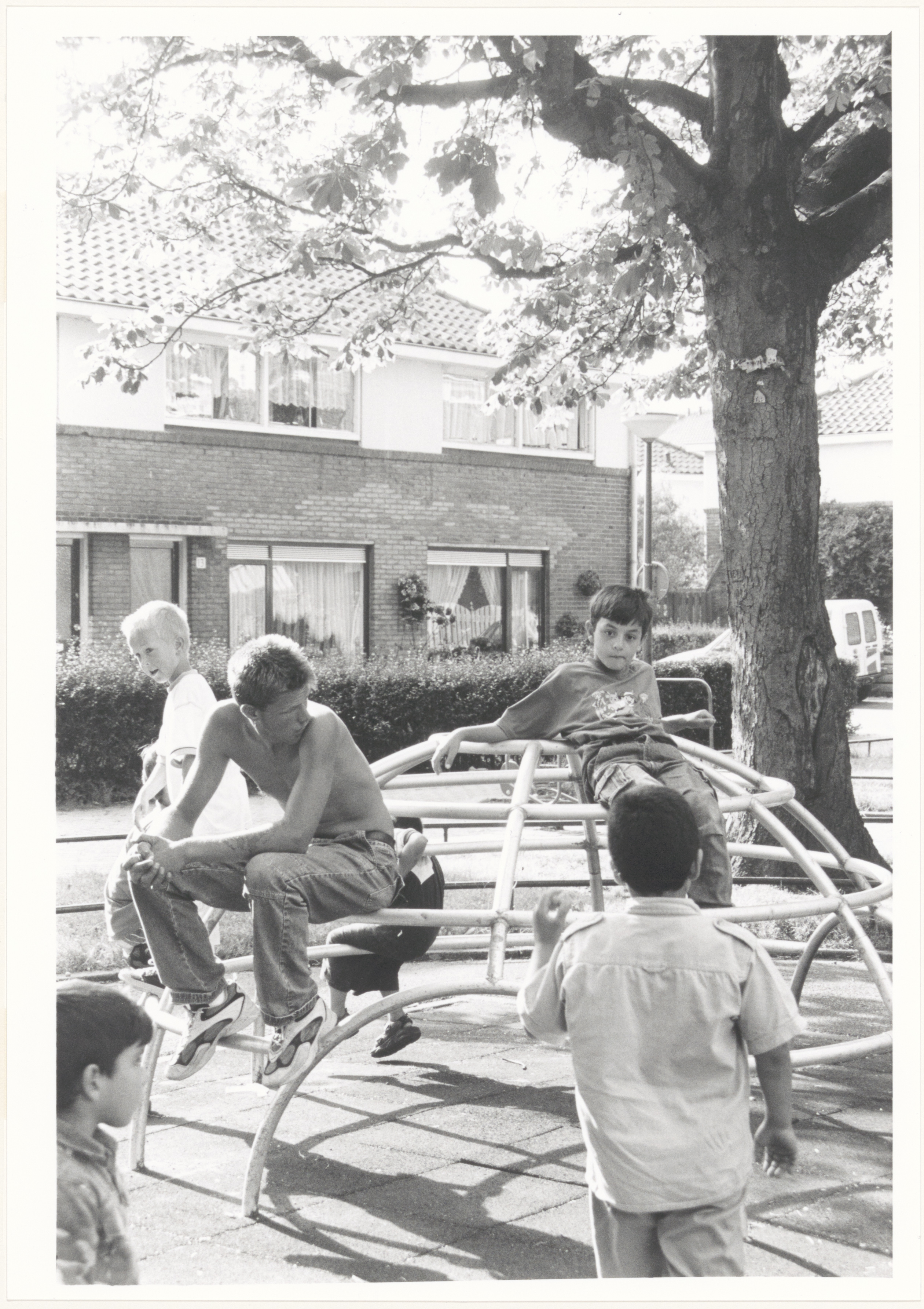 - Kinderen en een oplettende volwassene vermaken zich op het pleintje in de Johannes Bosboomstraat.