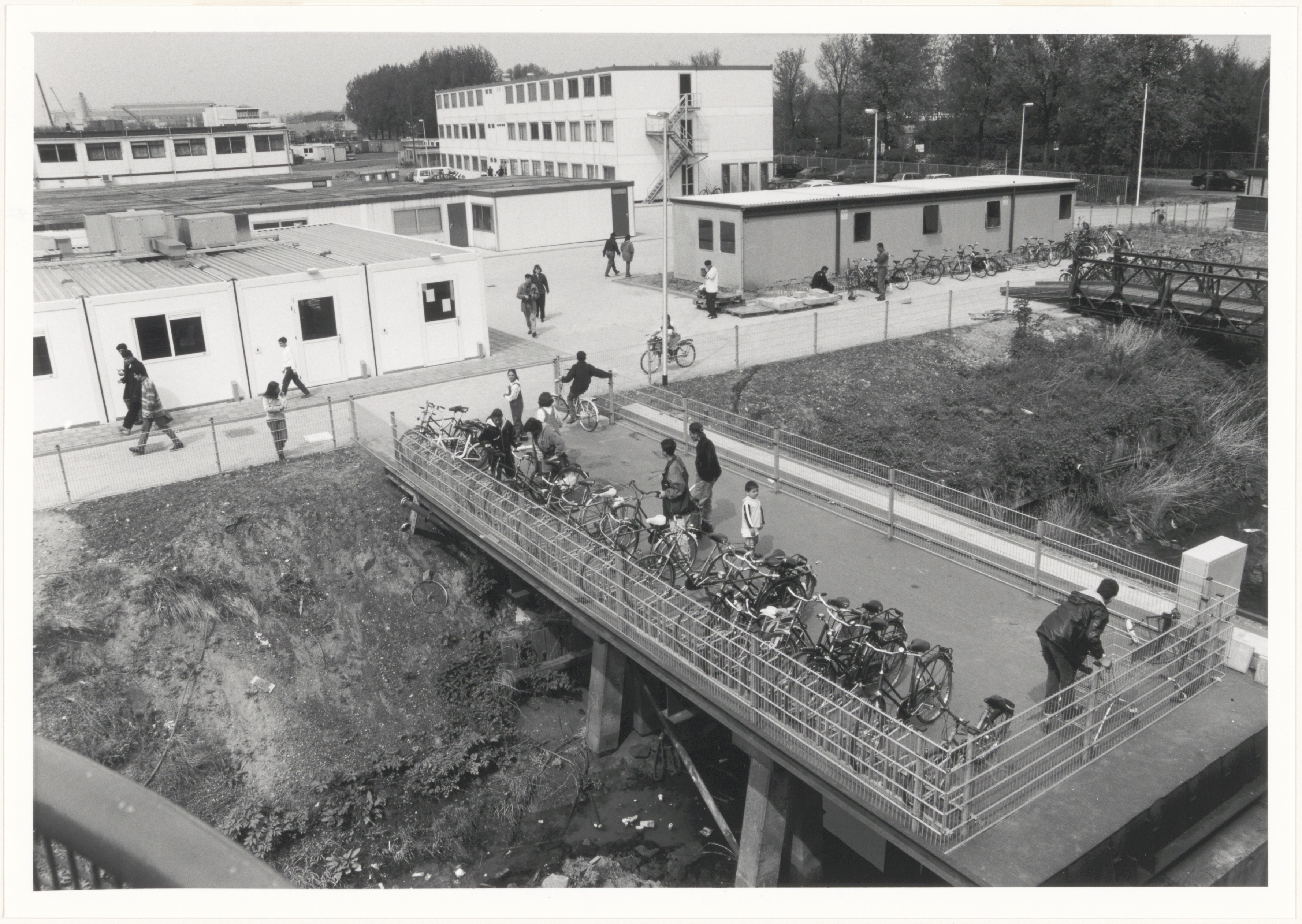 Mij valt de half afgebouwde brug op, met daar op de fietsenrekken. Is die brug ooit afgebouwd? Misschien ergens in de Stadspolders?