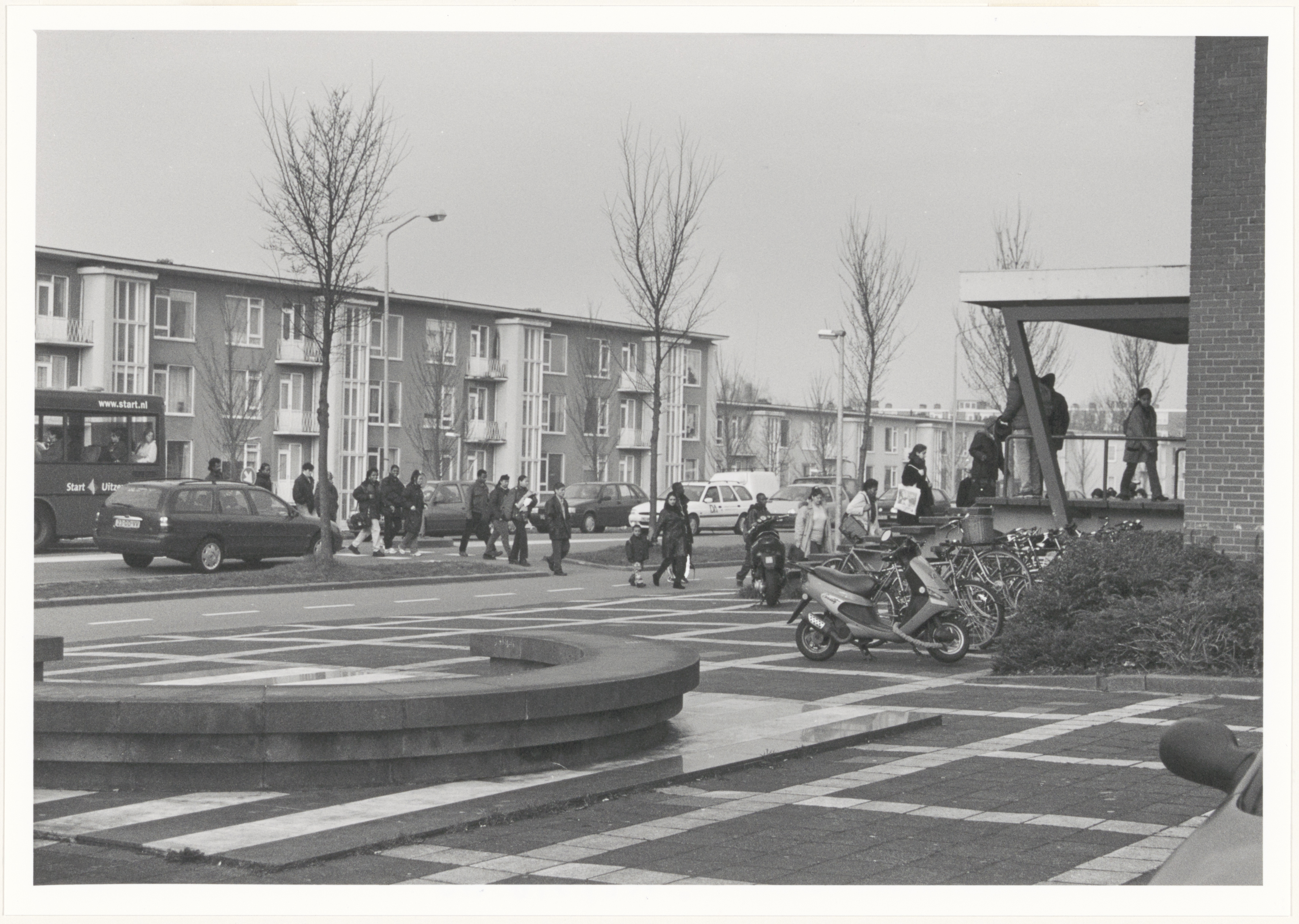 - Leerlingen op weg naar Scholengemeenschap Noordendijk, het voormalig Gemeentelijk Lyceum op de Noordendijk, gezien vanaf de Baden-Powelllaan.
