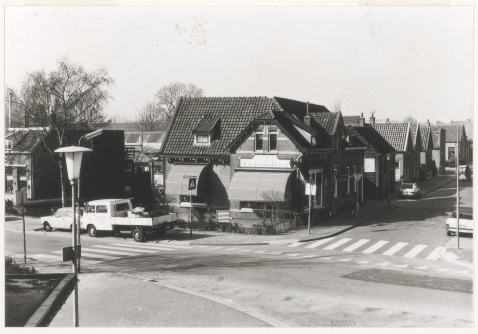 Bakkerij Korteweg op de hoek van de Damstraat en Dubbelsteynlaan West (voorgrond).