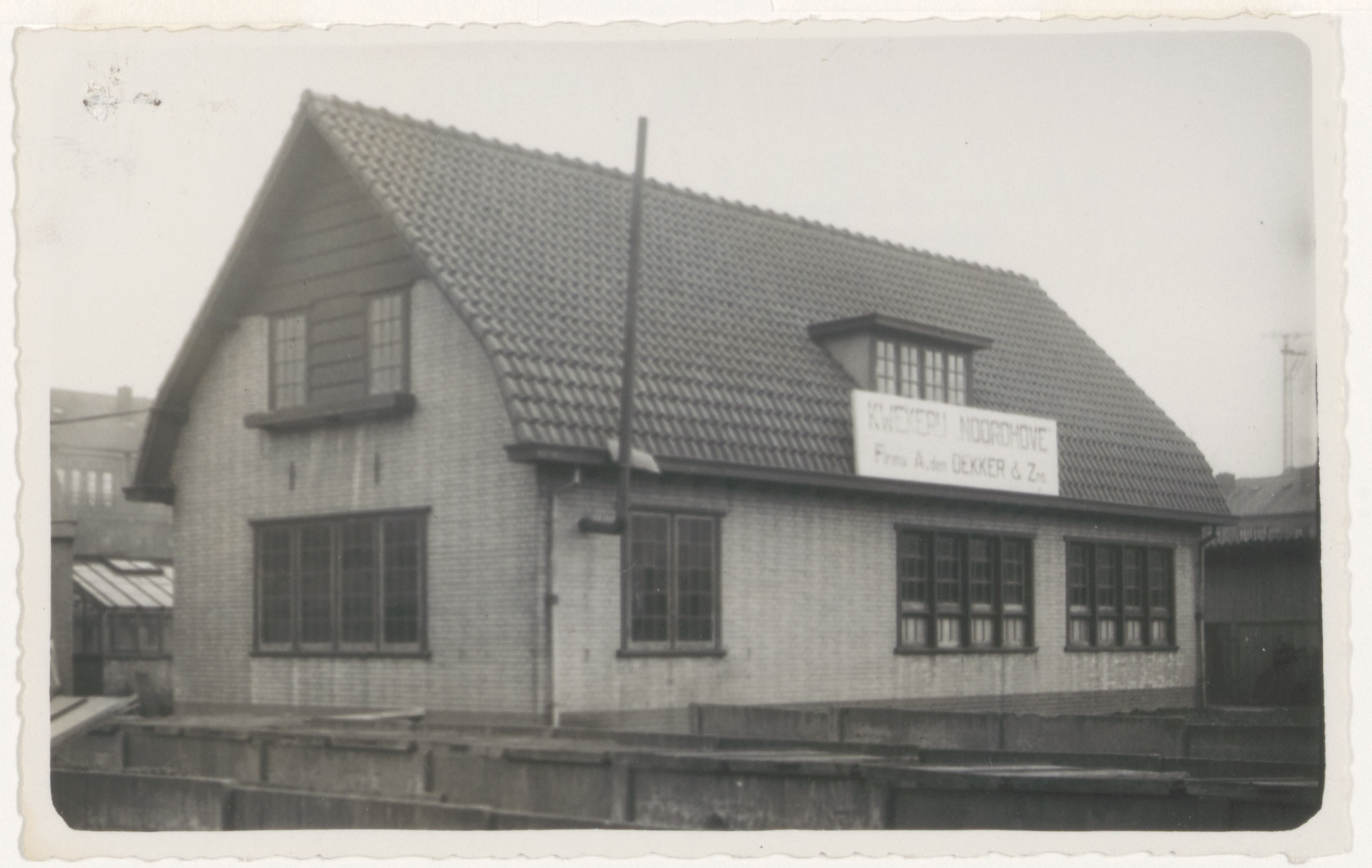 Kwekerij Den Dekker aan de Groenedijk. Links de Halincqhof, rechts achterkant van …