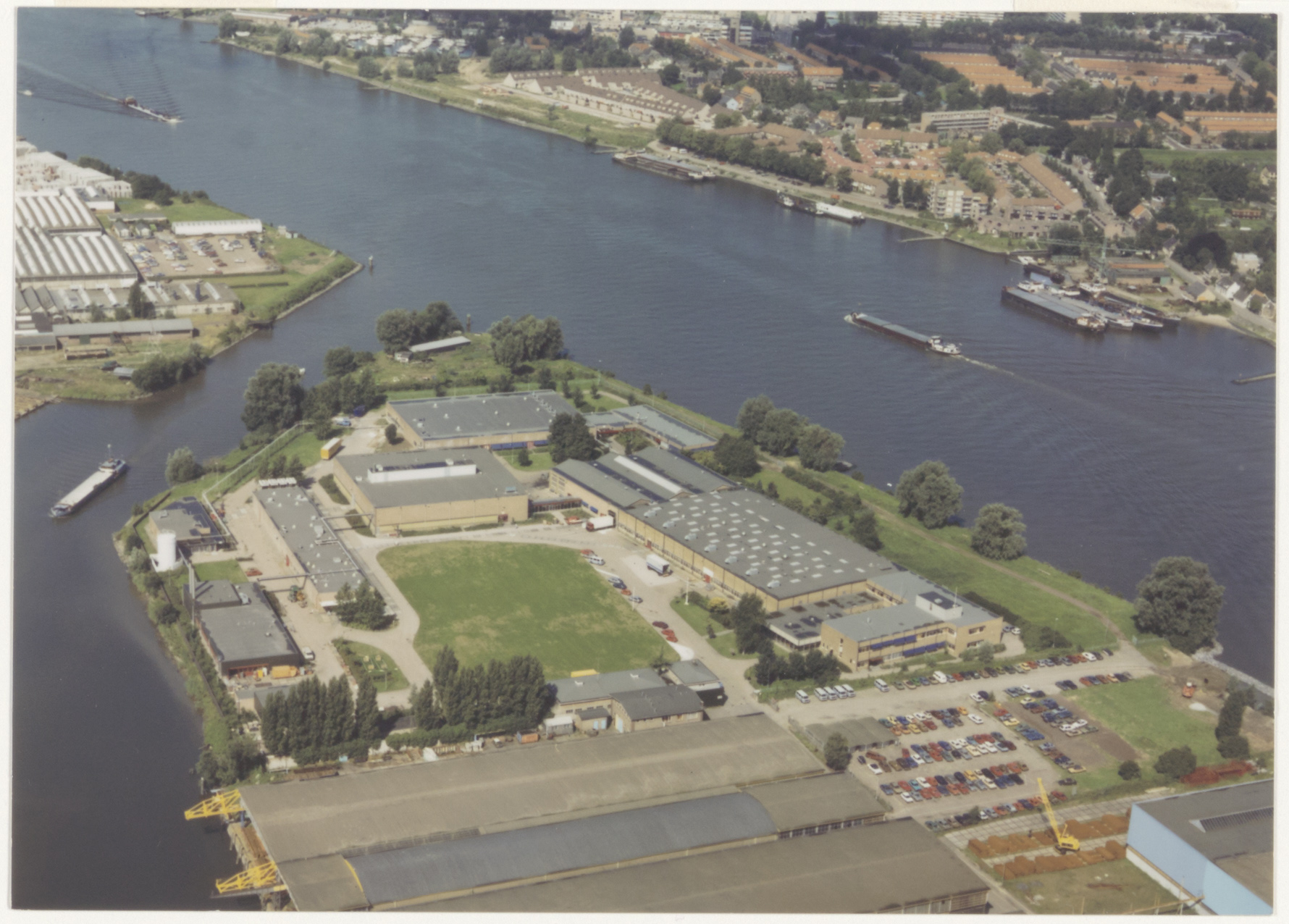 - Luchtfoto van de Eerste Merwedehaven (links), de Merwede en Papendrecht.