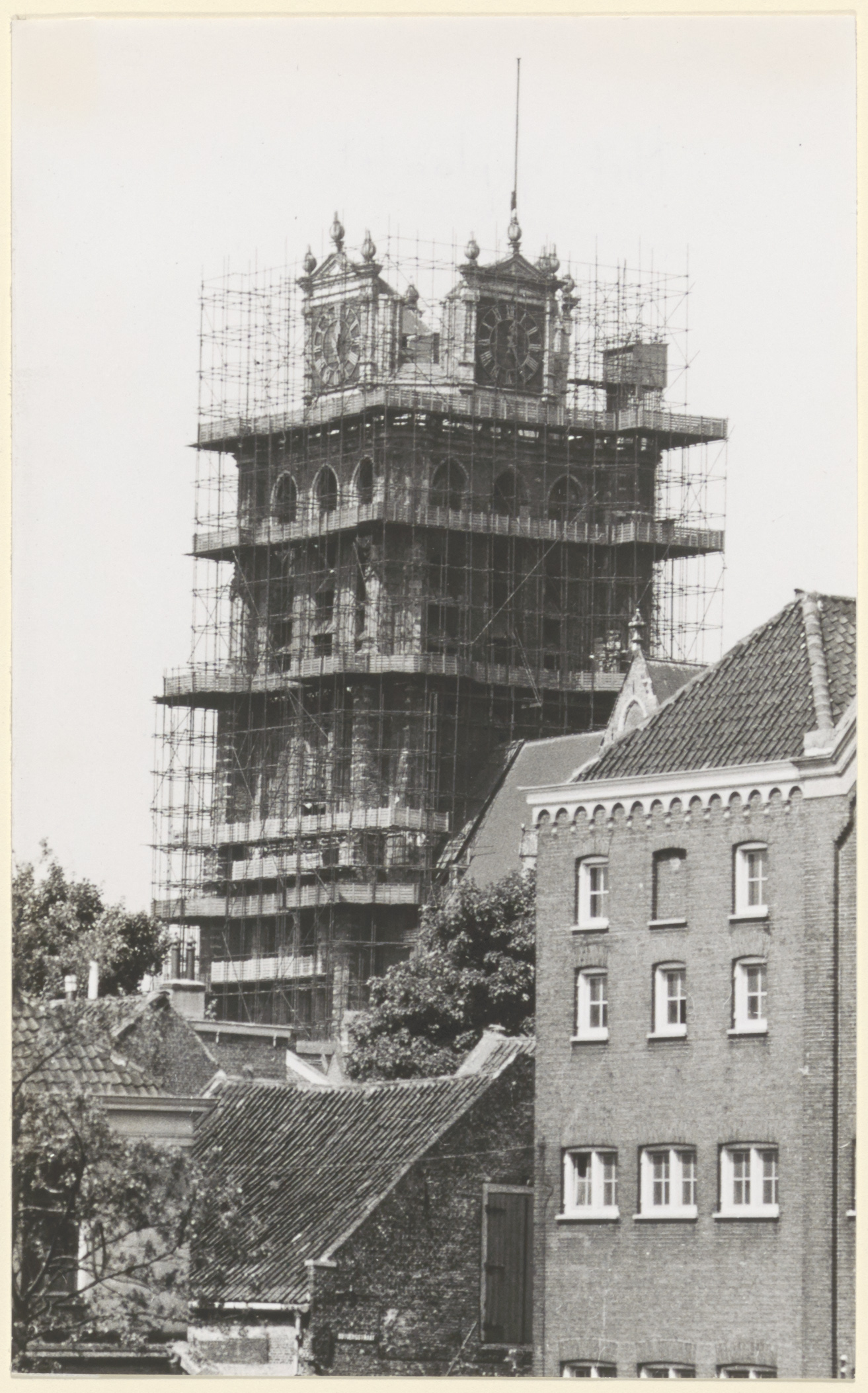 - Grotekerkstoren in de steigers tijdens restauratie.