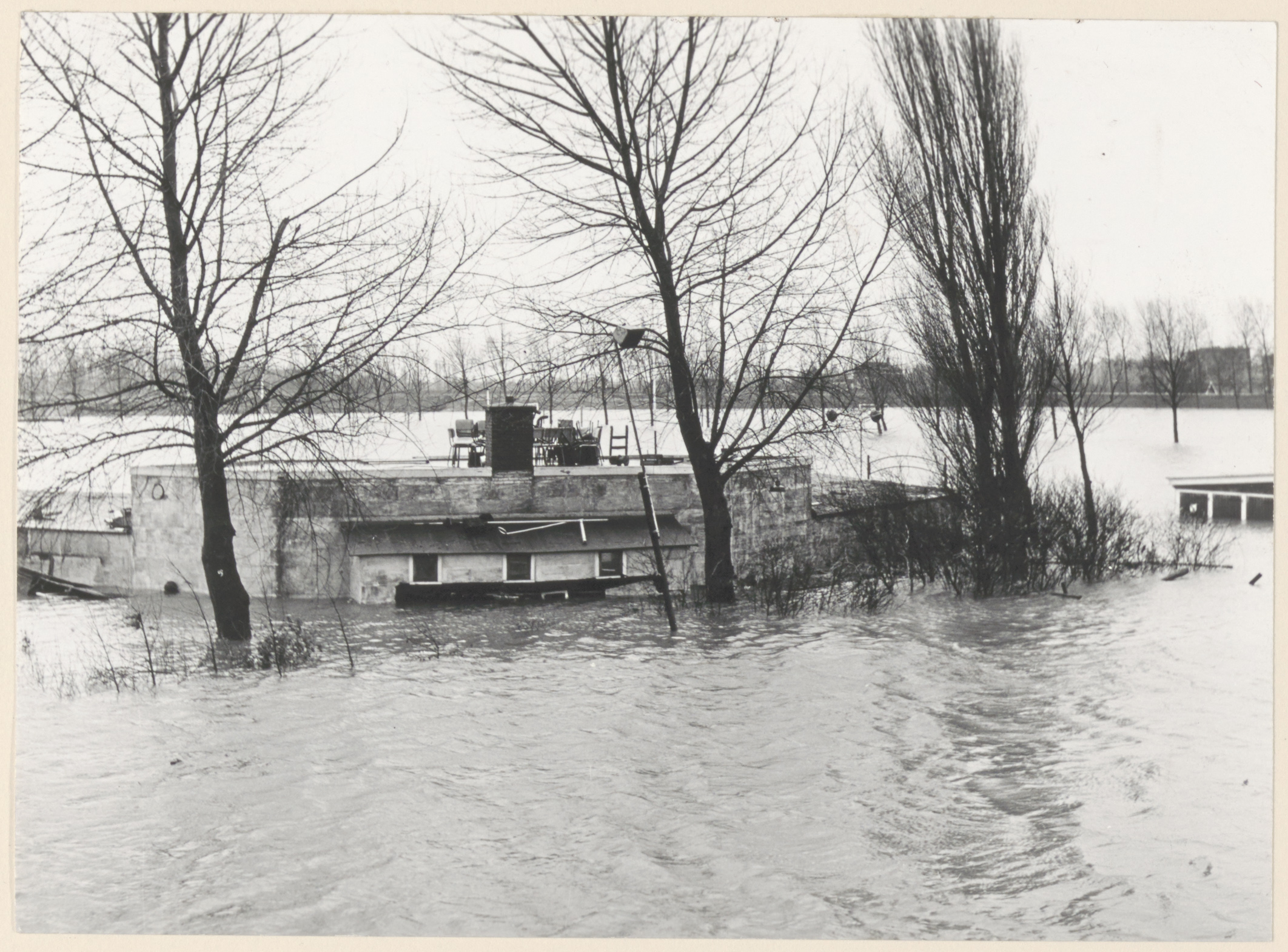 - Het clubhuis van atletiekvereniging Parthenon in de ondergelopen Windhondpolder tijdens de watersnood.