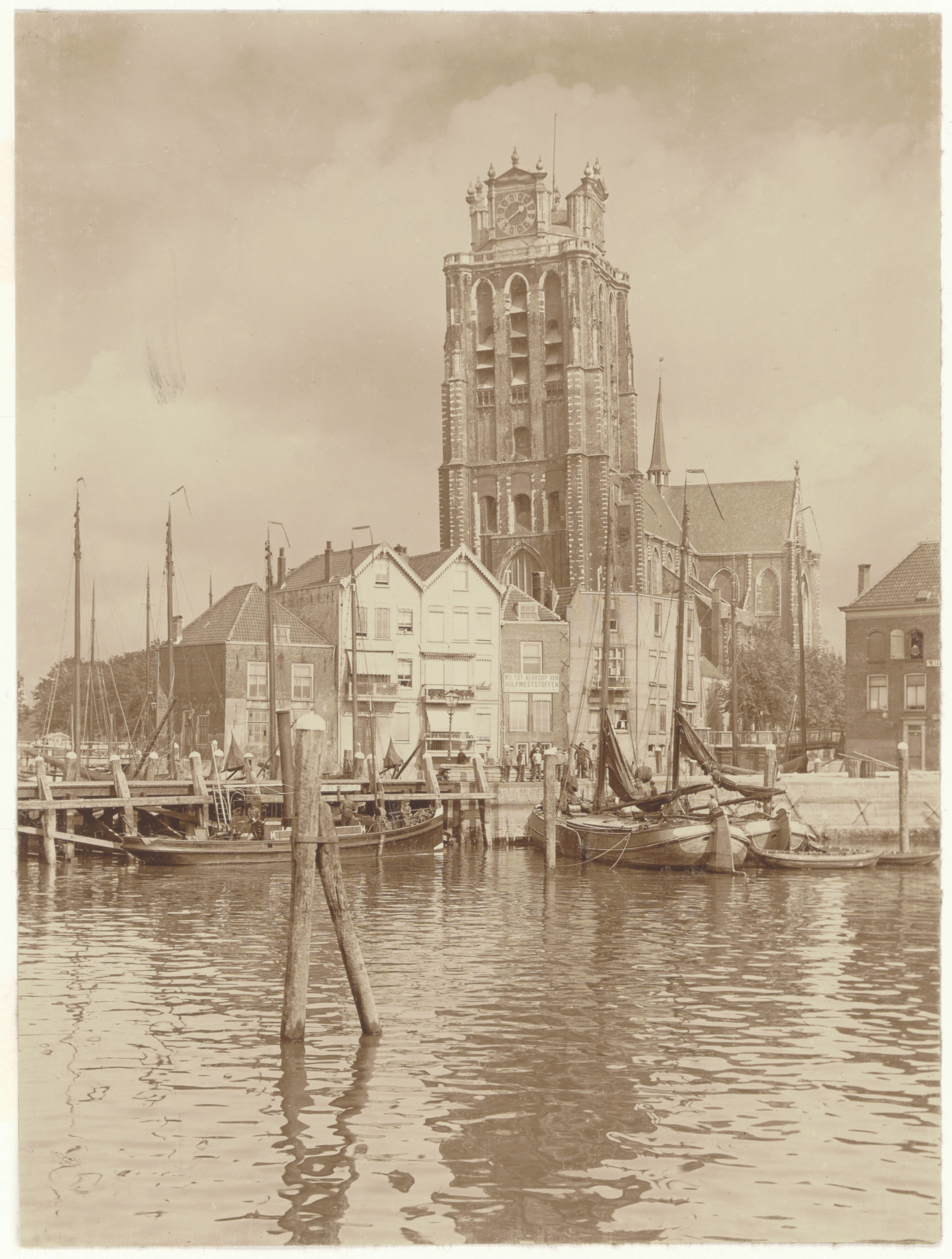 De Korte Geldersekade en de Grote Kerk gezien over de Bomhaven.