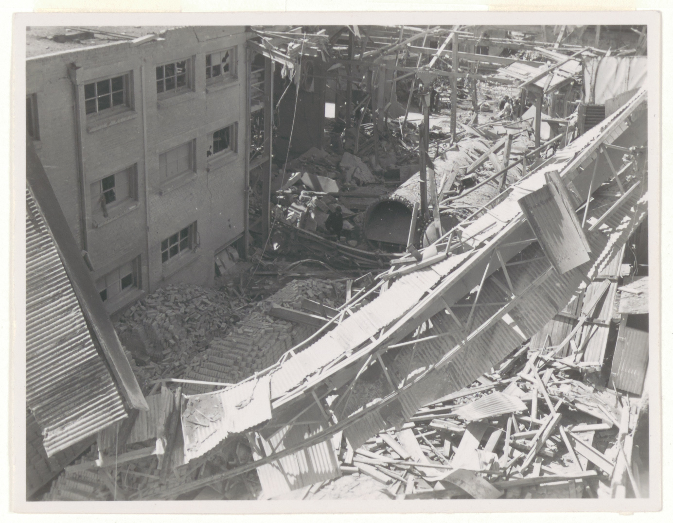 Ravage na een ontploffing bij kalkfabriek Van Dijk aan de Lijnbaan.