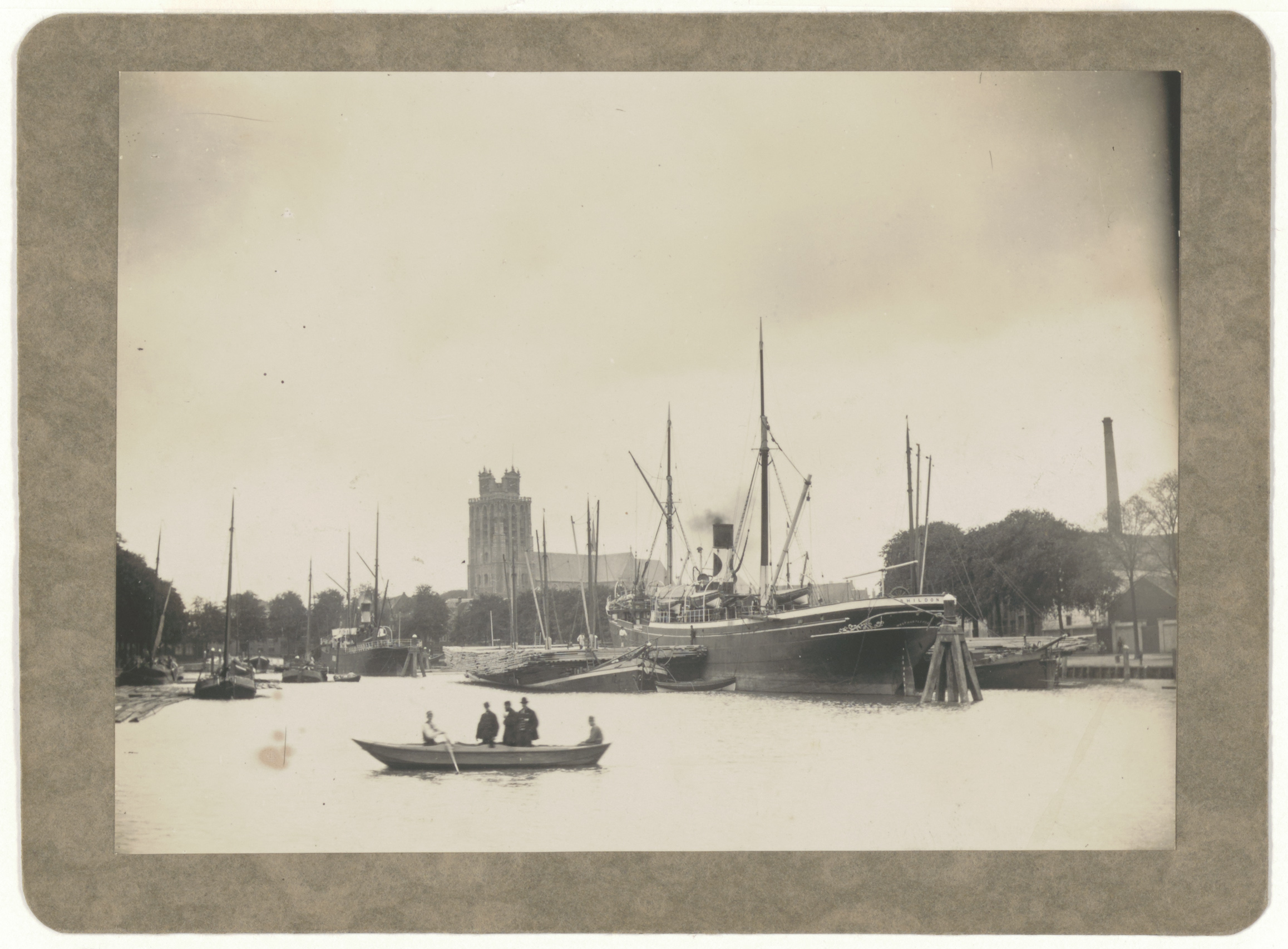 - fabriekspijpen / schoorstenen havens kerken roeiboten vrachtboten