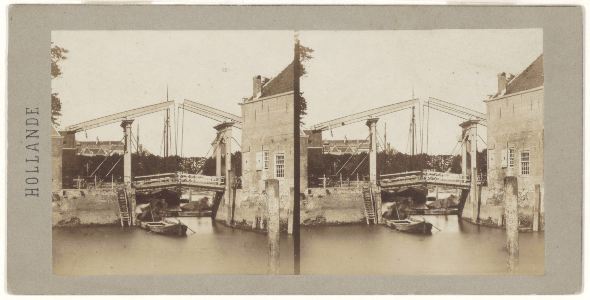 - Stereofoto van de Mazelaarsbrug, gezien over de Bomhaven richting Maartensgat. Het pand rechts staat aan de Korte Geldersekade.
