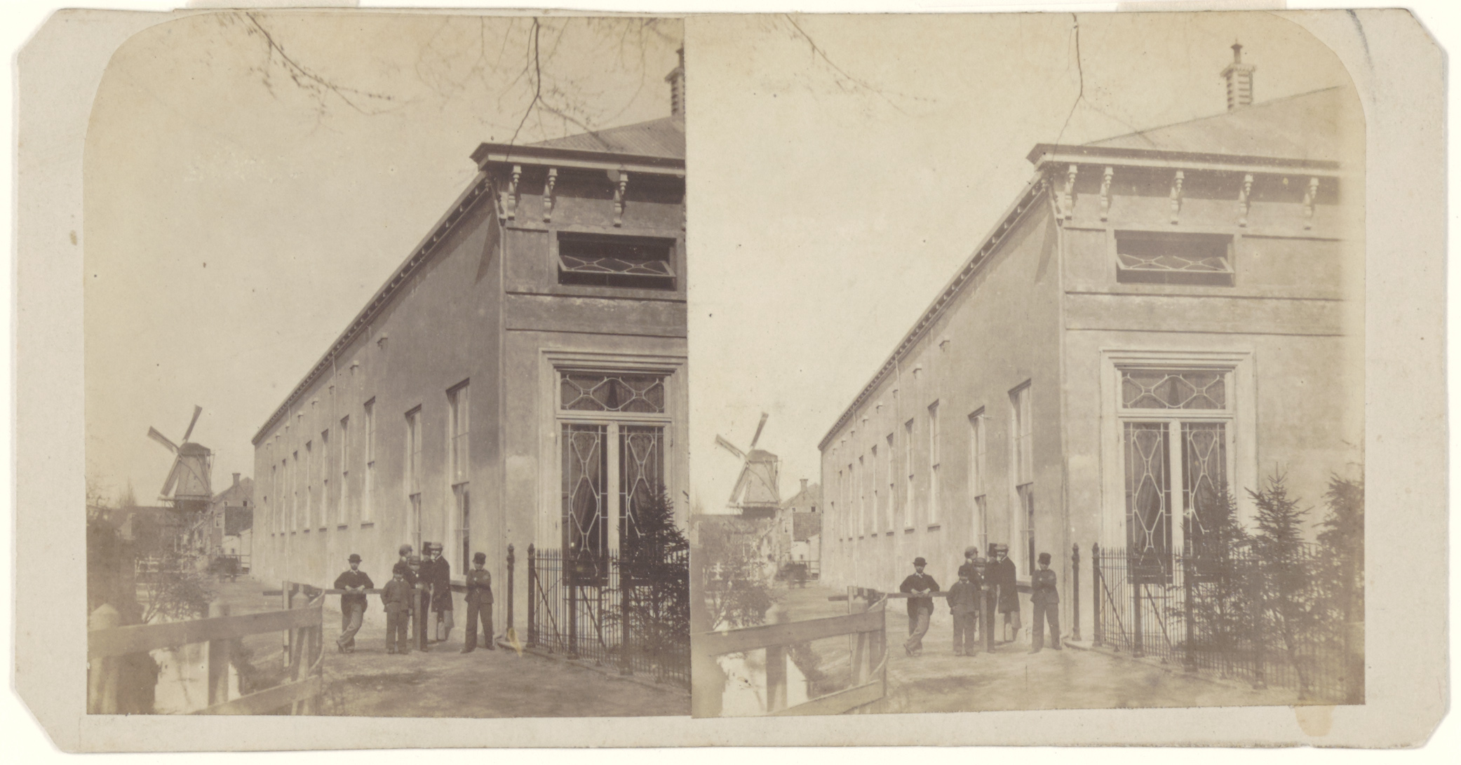 - Stereofoto van sociëteit Kunstmin op de hoek van de Sint Jorisweg en het Matena's Pad, gebouwd in 1850, gesloopt voor 1889. Op de achtergrond molen Het Fortuin aan de Noordendijk. Sinds de bouw in 1628 heette de molen De Vilder en kreeg rond 1811 de nieuwe naam. Hij werd in 1891 gesloopt.