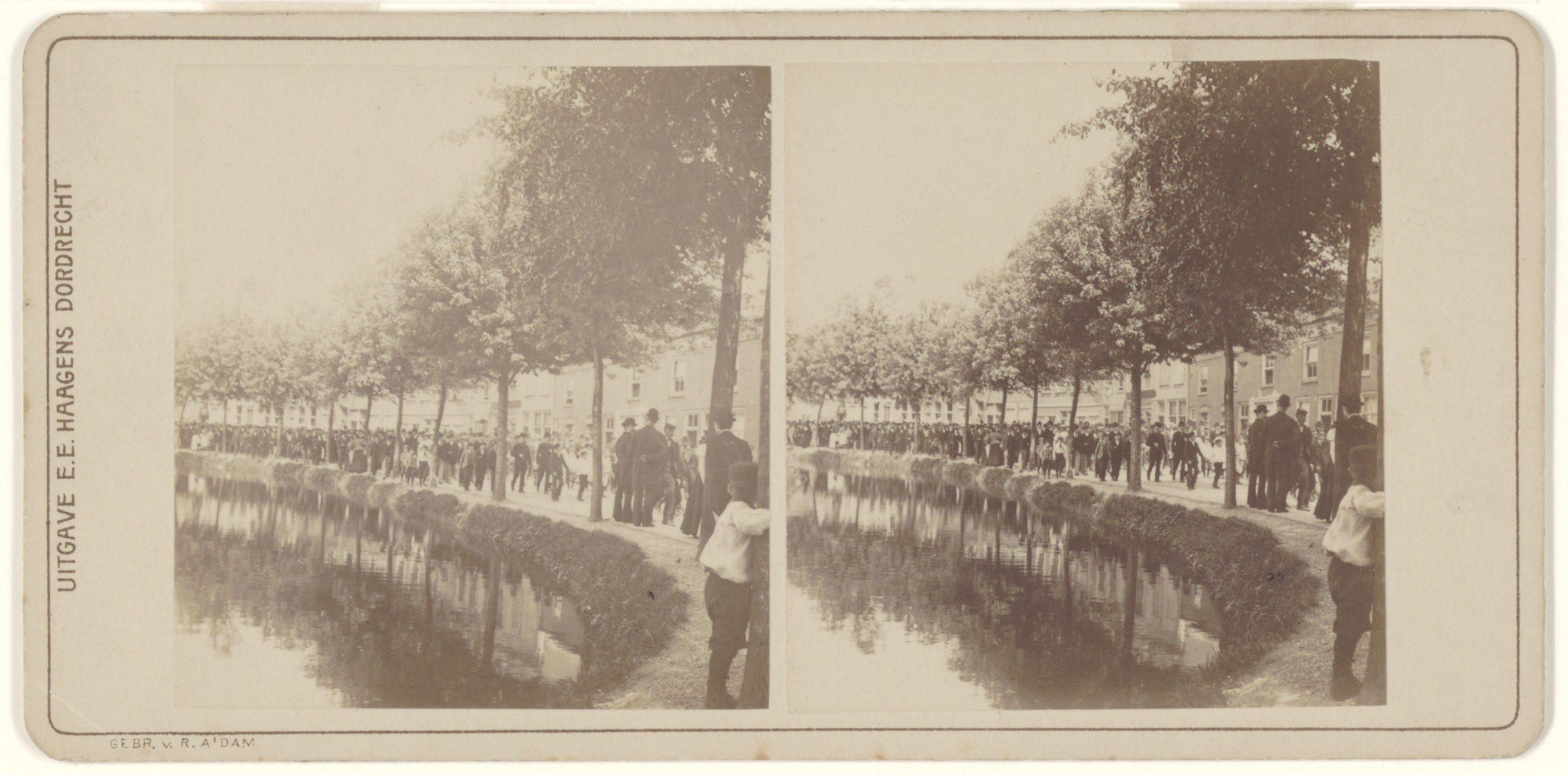 - Stereofoto van een optocht op de Blekersdijk langs de Beeldjeshaven.