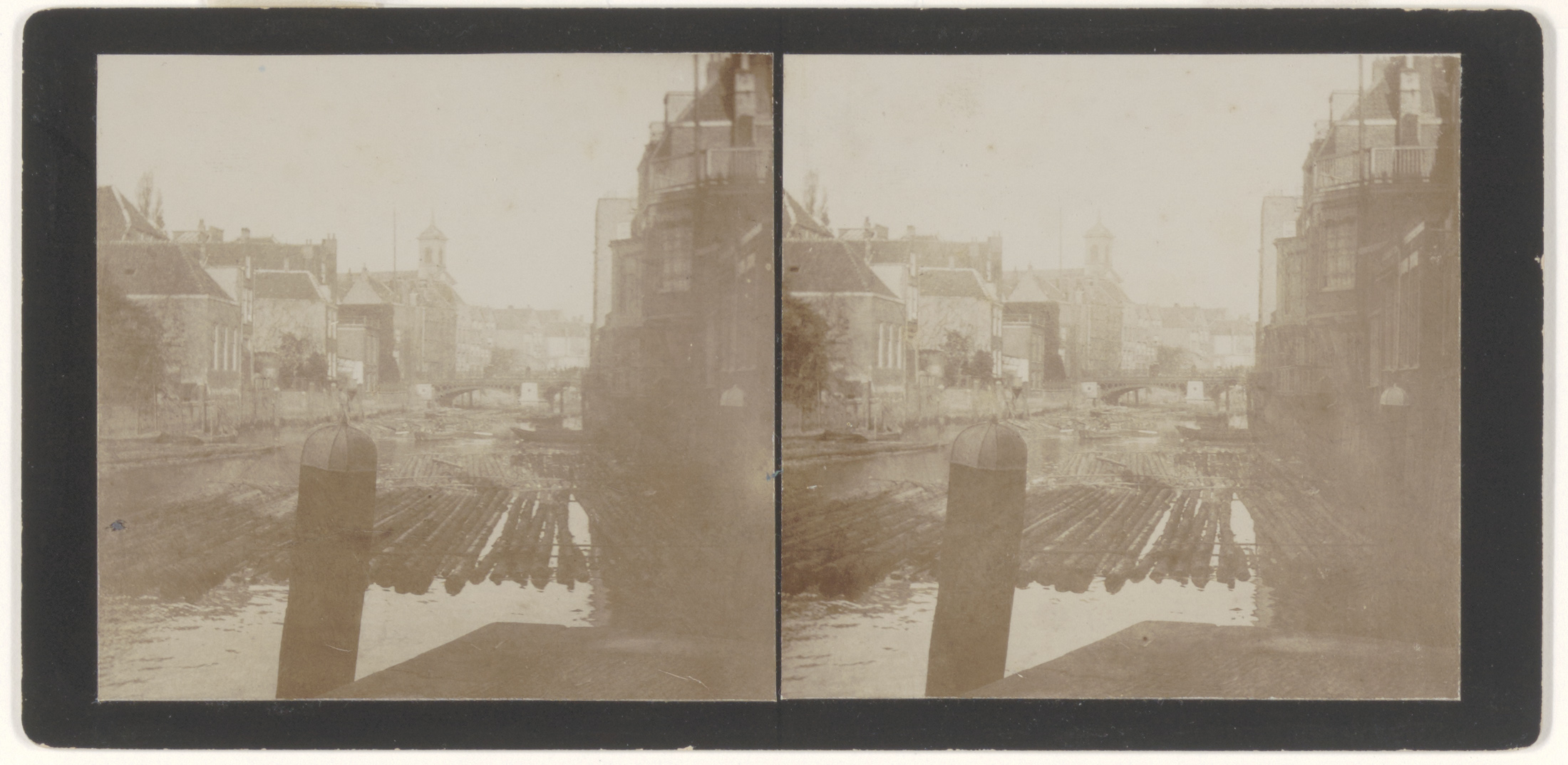 Stereofoto van de Wijnhaven vanaf de Grote Appelsteiger richting de Nieuwbrug en de …