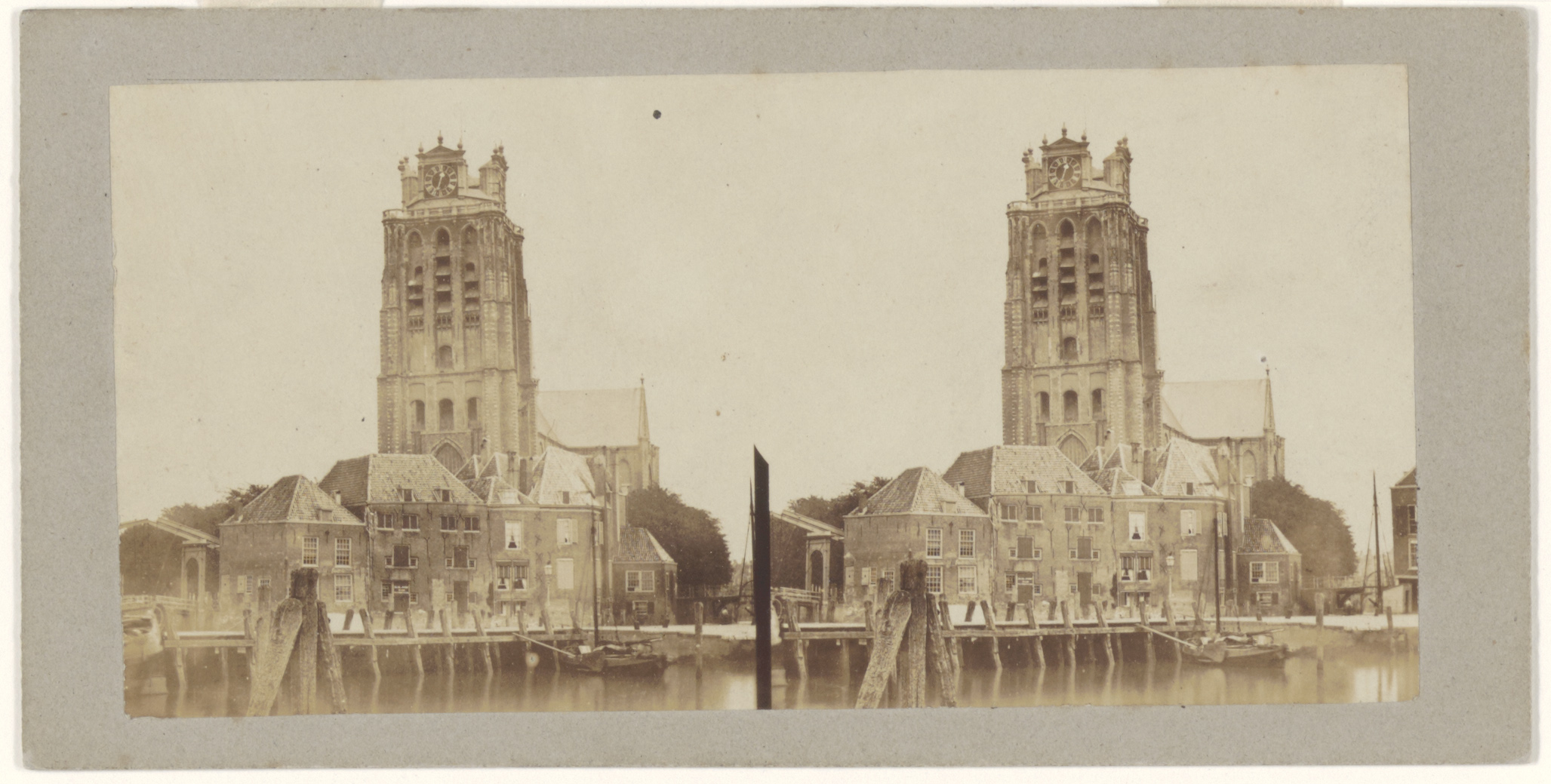 - Stereofoto van de Bomhaven, Korte Geldersekade, Grote Kerk en Leuvebrug.