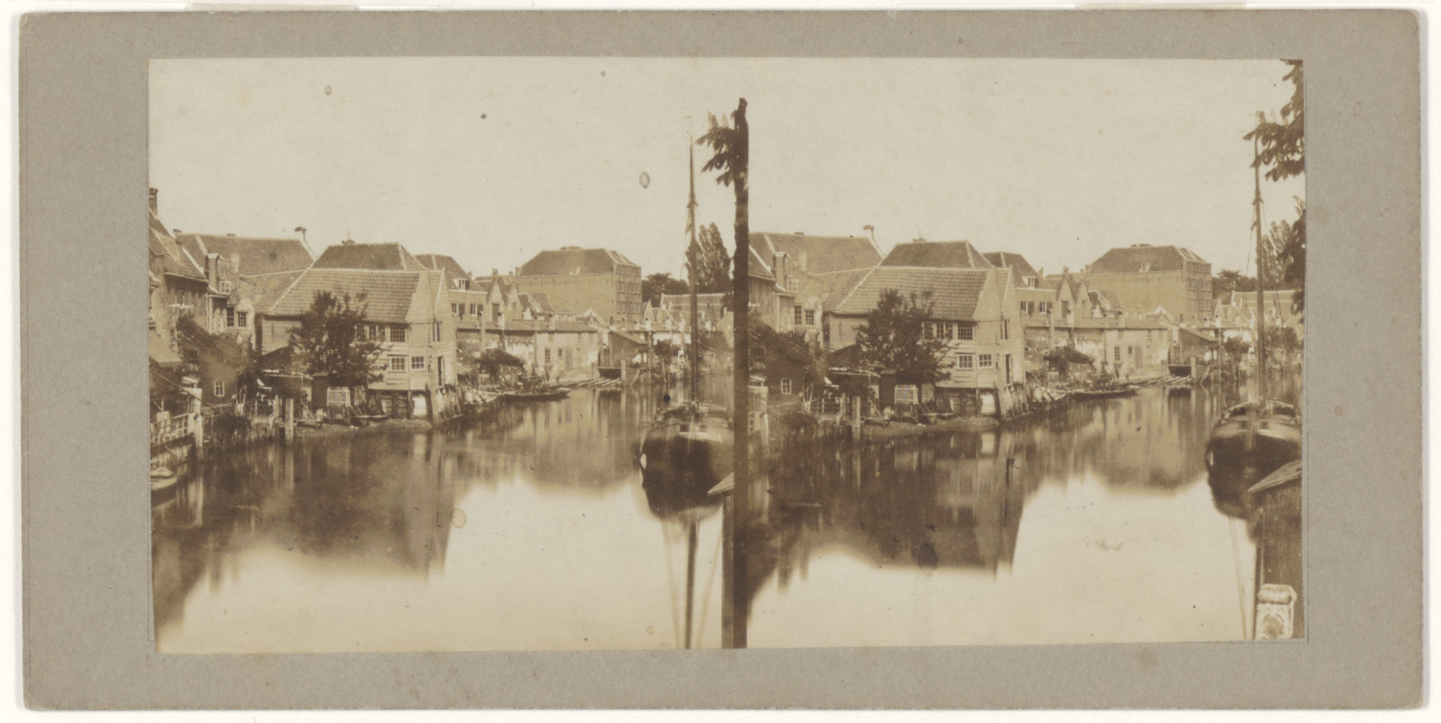 - Stereofoto vanaf de Zuidersluisbrug naar het oosten met zicht op het Slikveld en verderop de Boogjes.