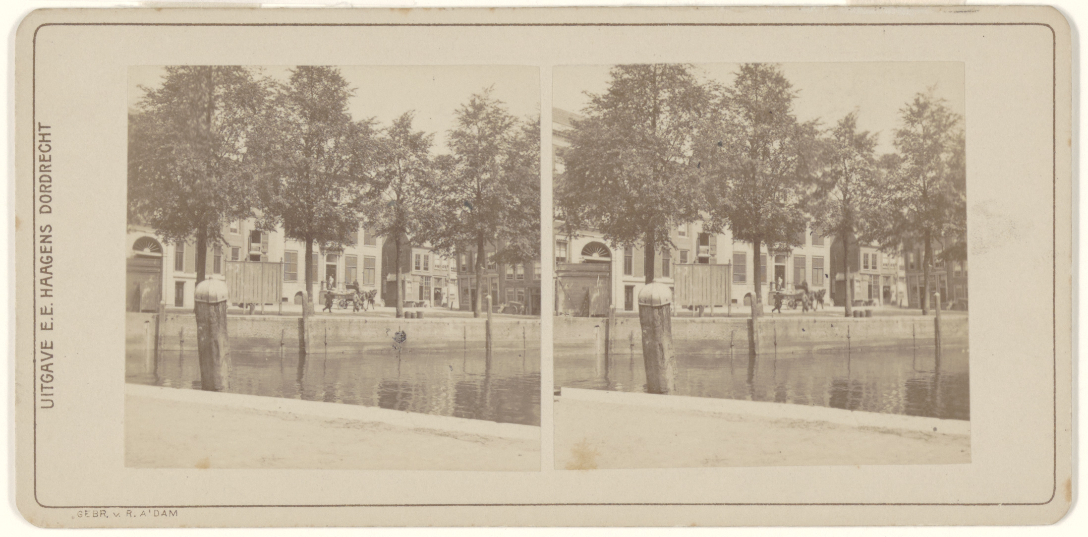 - Stereofoto van de Nieuwe Haven, gezien vanaf de Houttuinen. Links de Blauwpoort links, rechts de Hoge Nieuwstraat.