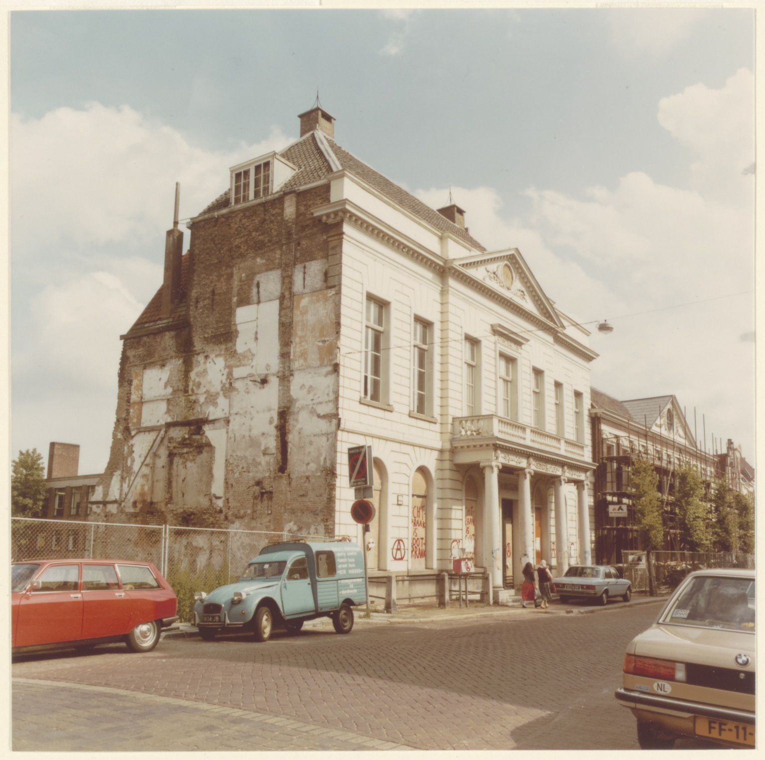 - Gesloopte bebouwing in het Steegoversloot geeft ruimte voor nieuwbouw aan het gerechtsgebouw. Verderop huishoudschool Doelesteyn in de steigers.