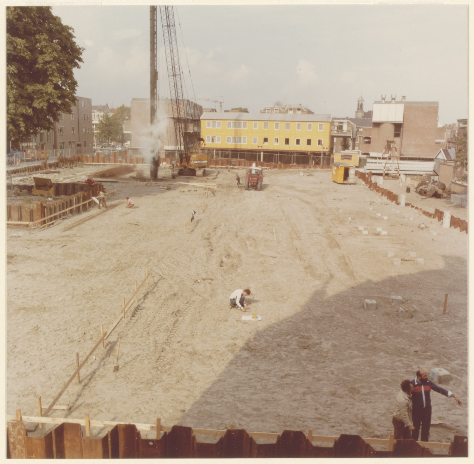 Bouw van de nieuwe rechtbank op de hoek Steegoversloot / Doelstraat.