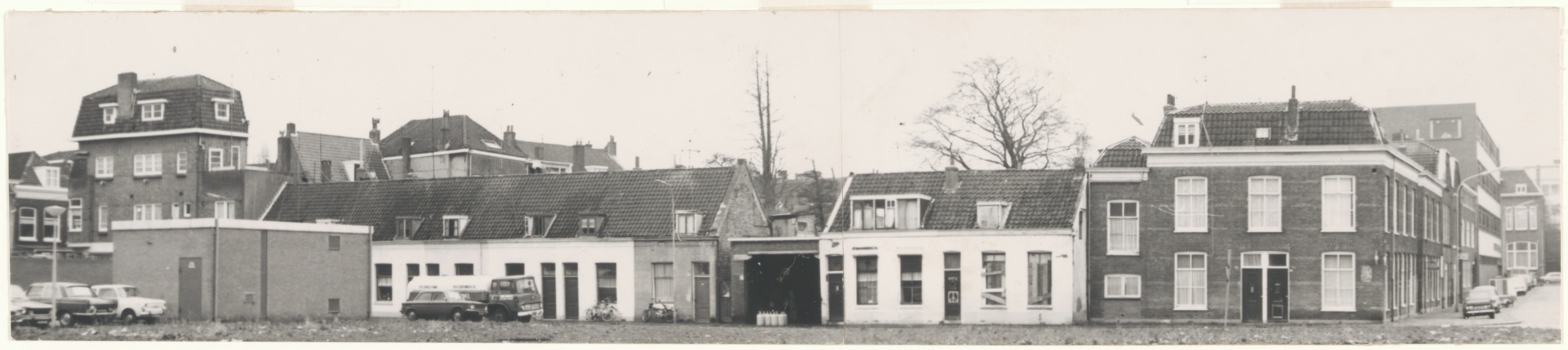 De panden links, zichtbaar over de pandjes van het Geldelozepad heen en die uiterst links, staan aan de Spuiweg. Achter het hoekpand Geldelozepad / Papeterspad ligt de Zomerhof.
