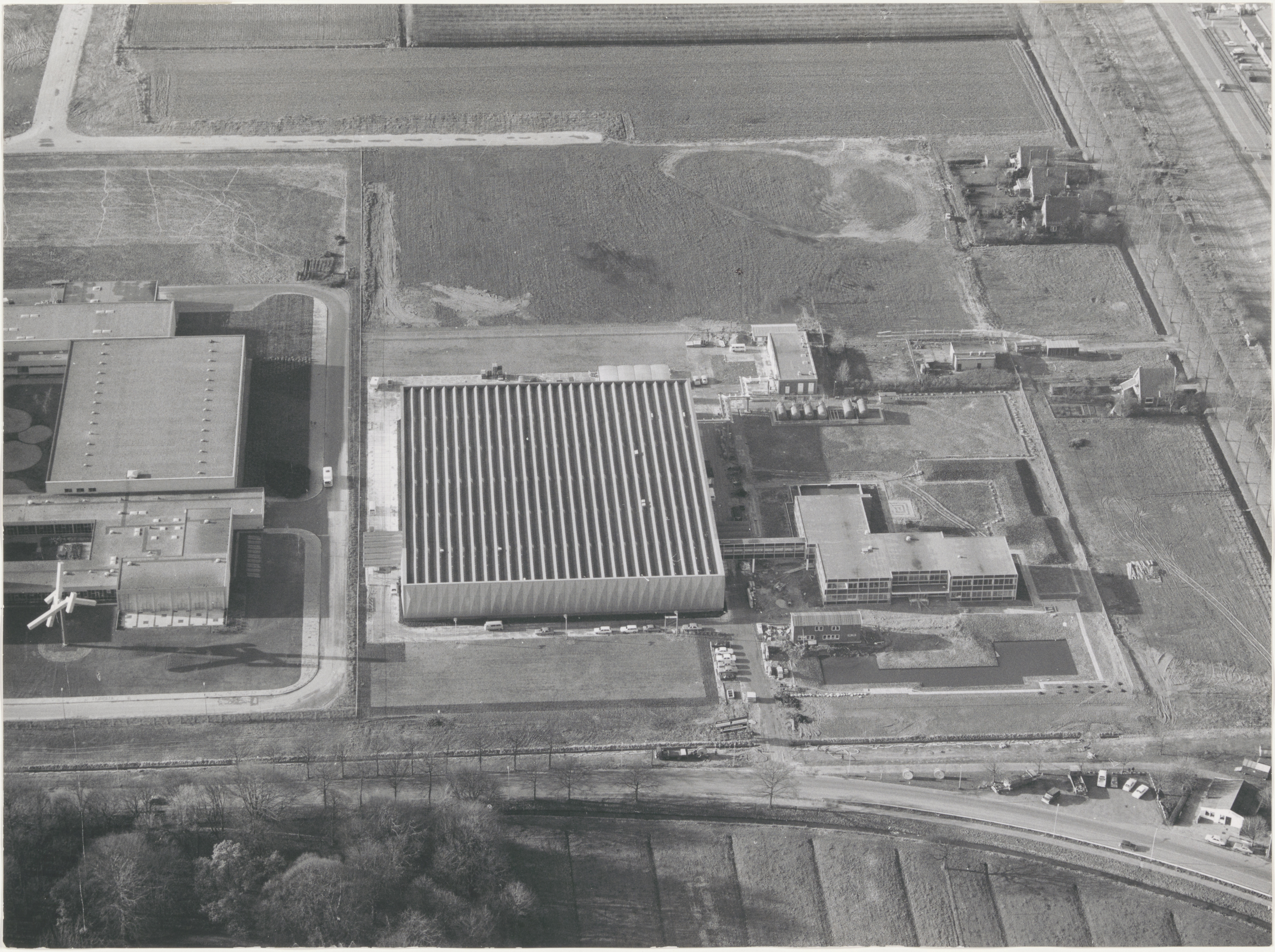 - Luchtfoto van Schwarzkopf aan de Rijksstraatweg. Links staat de sociale werkplaats DSW.