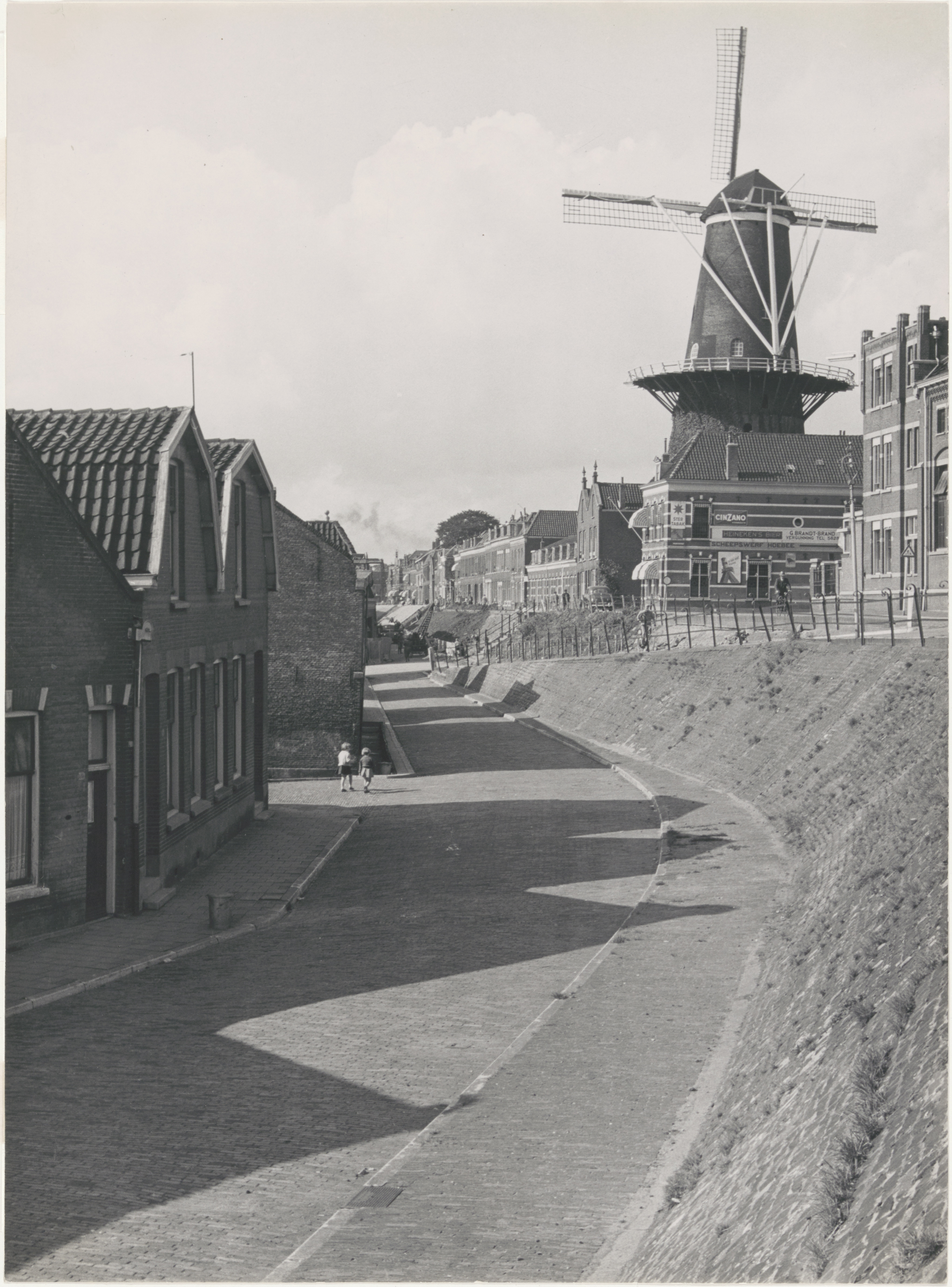 Molen Kijck over den Dijck aan de Noordendijk. Rechts de centrale, daarnaast café …