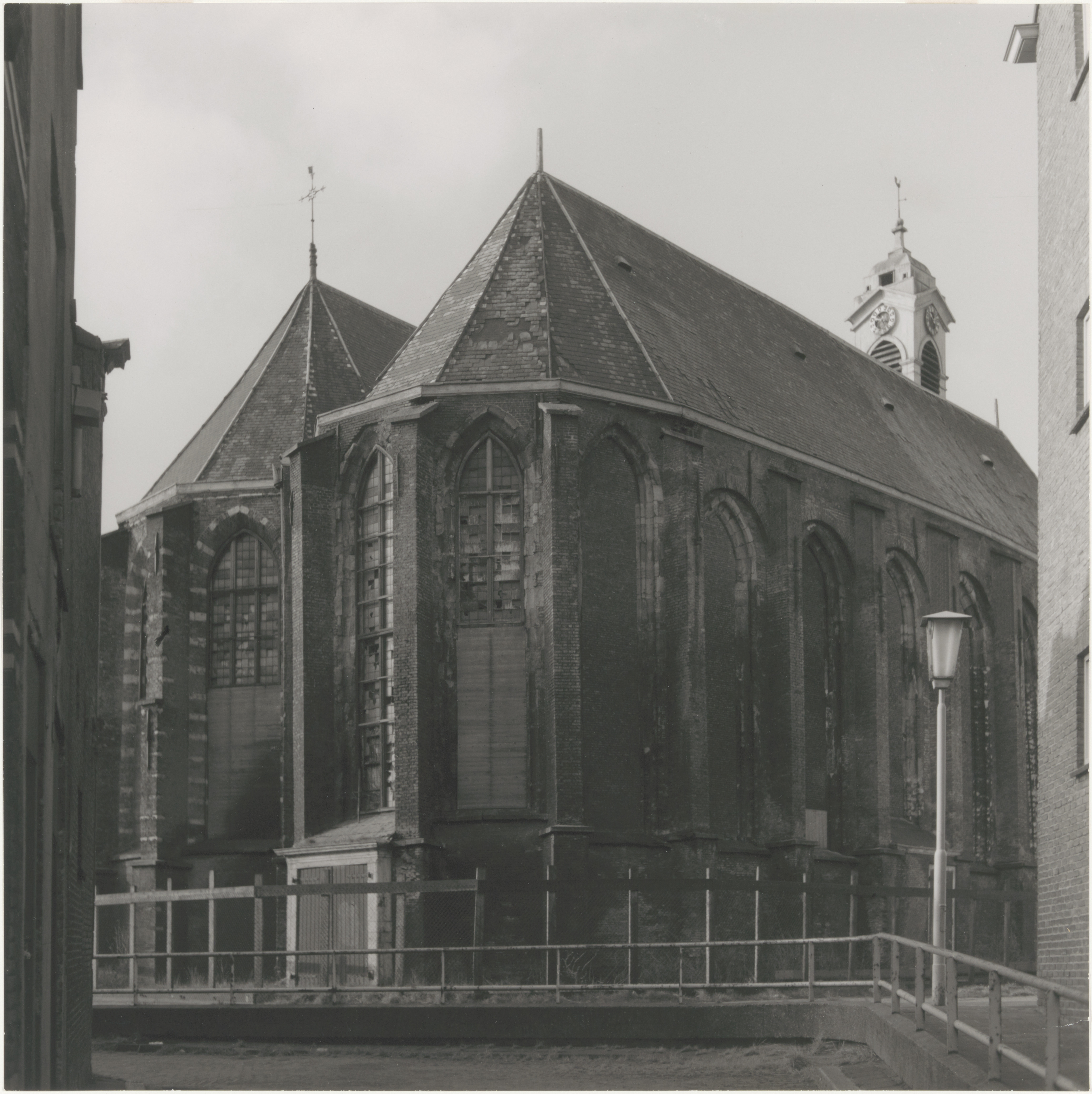 De Nieuwkerk op het Nieuwkerksplein, voor de consolidatie in 1975.