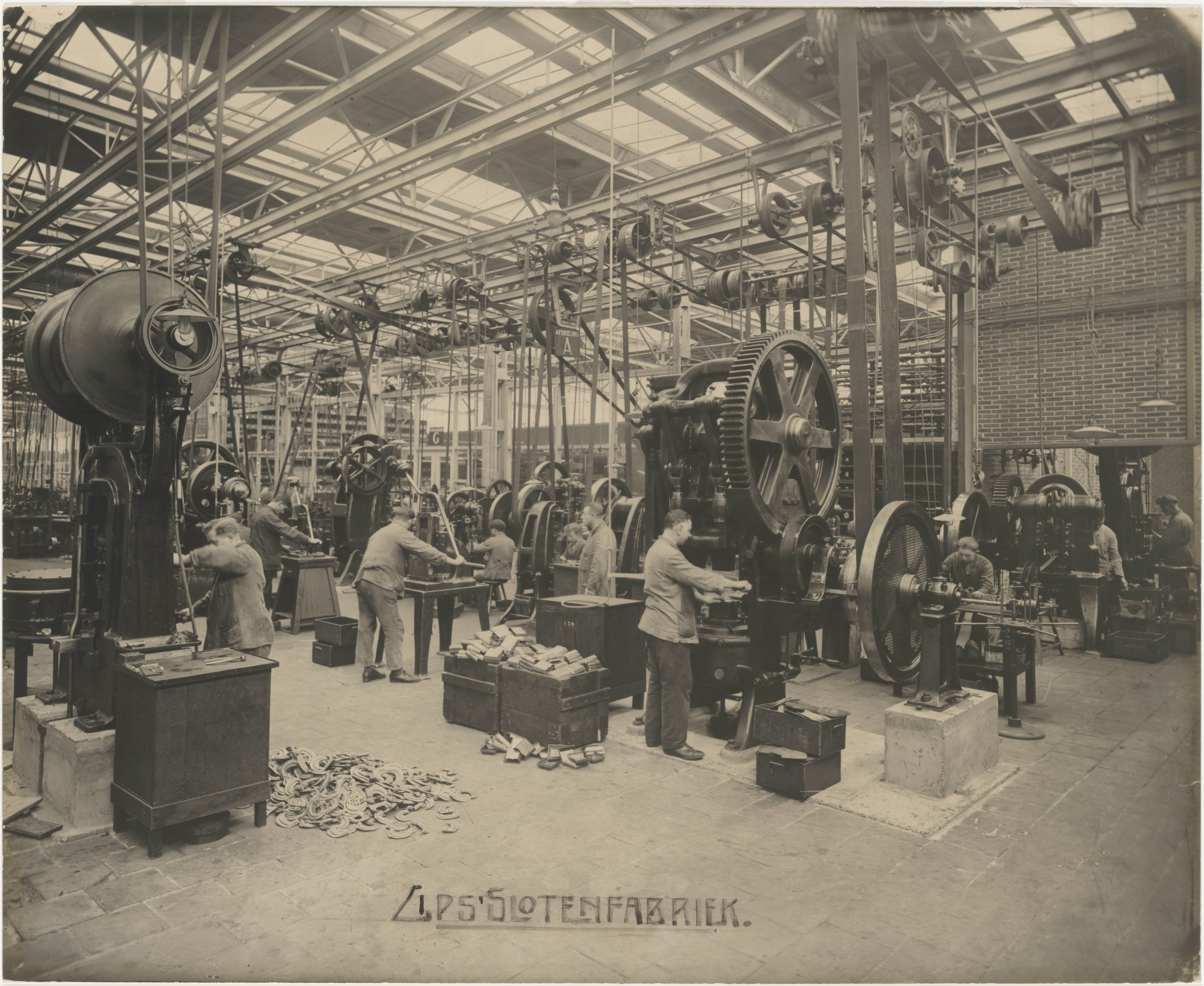 Fabriekshal van de Lips brandkasten- en slotenfabriek aan de Merwedestraat.