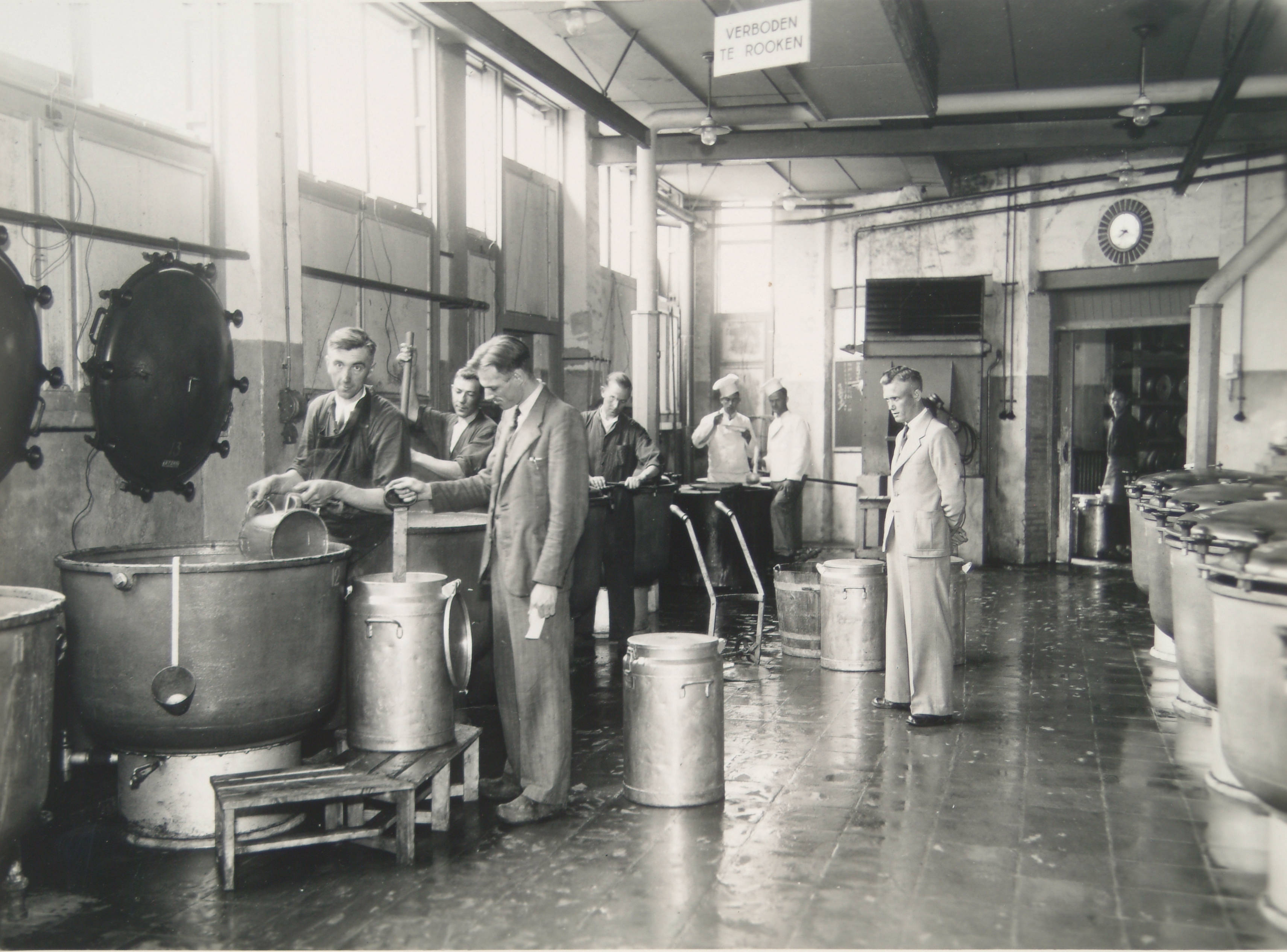 Centrale keuken in de Chocolade- en biscuitfabriek Victoria aan de Korte Parallelweg. …