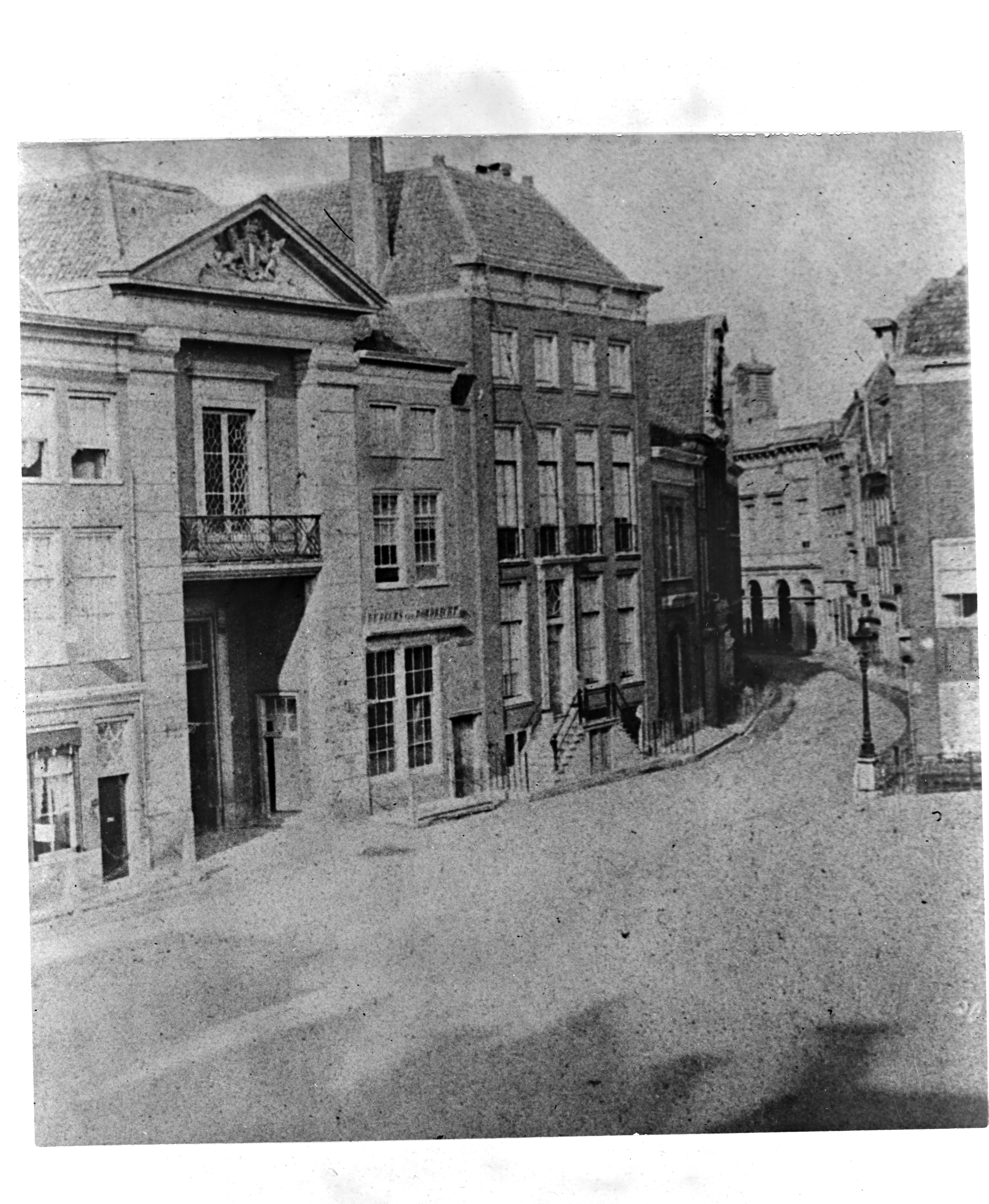 - De Wijnstraat vanaf het Scheffersplein. Links de Waag, op de achtergrond de leeszaal.